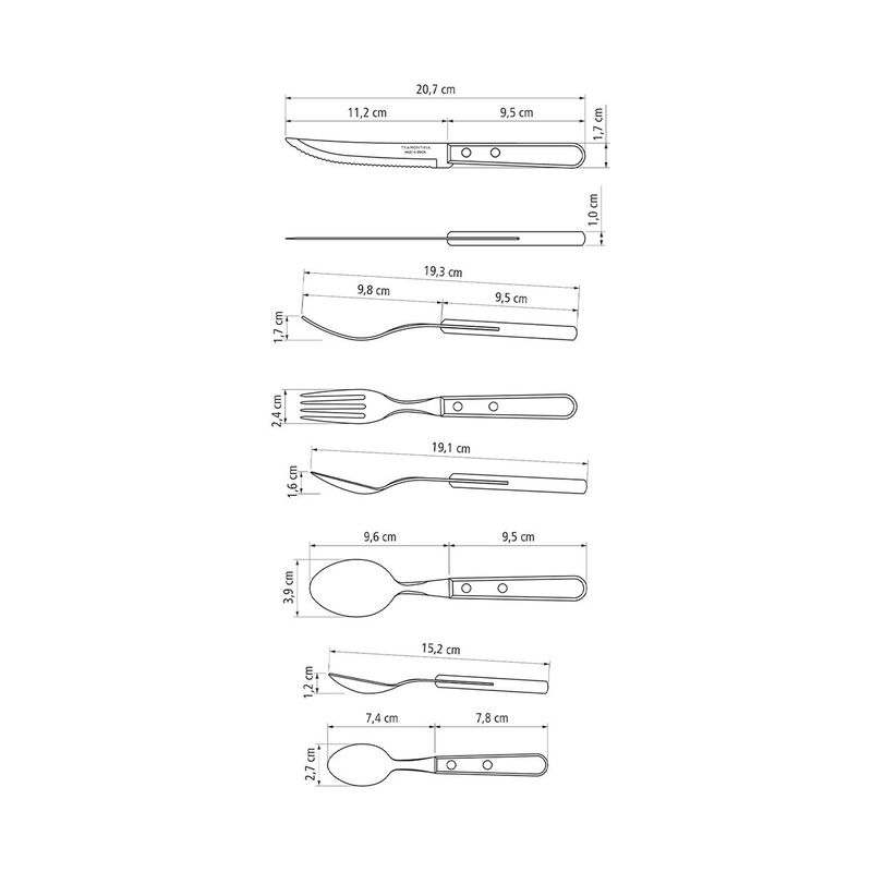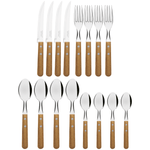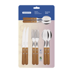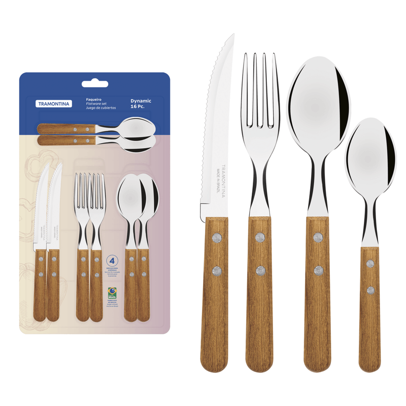 El juego de cubiertos Tramontina Dynamic con láminas en acero inoxidable y mangos de madera natural de 16 piezas es la elección ideal para acompañarlo en las comidas principales. Compuesto por cuchillos, tenedores y cucharas fabricados con láminas de acero inoxidable y mangos de madera natural con remaches de aluminio, es un juego de cubiertos resistente y duradero. Sus cuchillos garantizan un excelente hilo de corte y los tenedores y las cucharas poseen un estampado especial, que proporciona resistencia y durabilidad. Los cubiertos son muy fáciles de limpiar y harán que su día a día sea mucho más práctico!