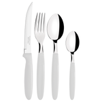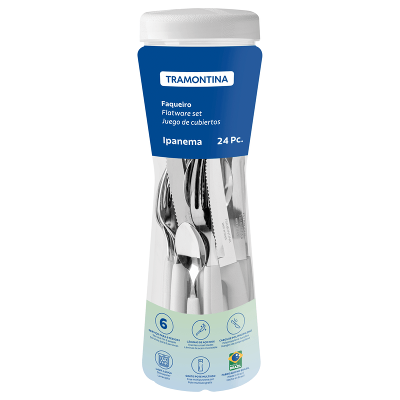 Si tú también amas una mesa bonita y clásica, te va a encantar el juego de cubiertos Tramontina Ipanema con láminas de acero inoxidable y mangos de polipropileno blanco con pote plástico 24 piezas. Son lindos cubiertos con mango de polipropileno blanco y láminas de acero inoxidable que van a acompañar todas las comidas de tu día a día, porque son resistentes y durables. El juego de cubiertos es muy fácil de limpiar y viene con un pote plástico, perfecto para guardar los cubiertos o incluso alimentos como fideos y arroz., La elección ideal para formar parte de tu día a día!