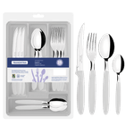 El juego de cubiertos Tramontina Ipanema con láminas en acero inoxidable y mangos de polipropileno blanco con cajonera plástica 25 piezas es la combinación perfecta de practicidad y elegancia para el día a día. Las láminas en acero inoxidable garantizan resistencia, mientras que los mangos de polipropileno blanco ofrecen confort en el uso y un aspecto clean para la mesa. La cajonera plástica facilita la organización de los cubiertos. Funcionalidad y estilo para su cocina.