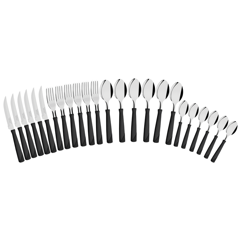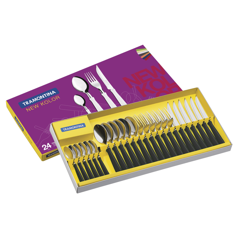 Juego de Cubiertos New Kolor con Láminas de Acero Inoxidable y Mangos de Polipropileno Negro 24 Piezas