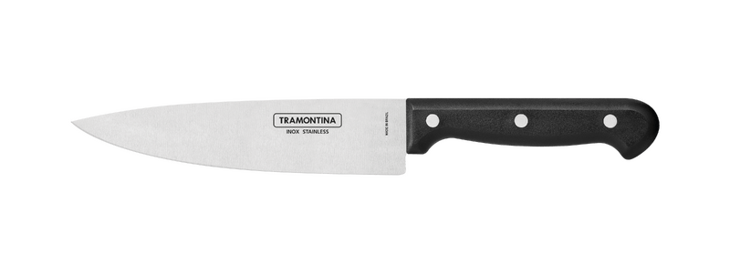 El juego de cuchillos con chaira Tramontina Ultracorte con láminas de acero inoxidable y mangos de polipropileno negro, 3 piezas, es perfecto tanto para preparar sus recetas diarias como para los momentos en familia los domingos. El conjunto de 3 piezas es ideal para cortar y mantener el filo de los cuchillos. Las láminas son de acero inoxidable y tienen tratamiento térmico, que le da más durabilidad al filo. Los mangos son de polipropileno con protección antibacteriana, que inhibe el crecimiento de hongos y bacterias. La chaira se fabrica en acero revestido de cromo duro. Son productos de calidad esenciales para preparar sus recetas. Fáciles de lavar y cómodos de usar, se pueden llevar al lavavajillas.