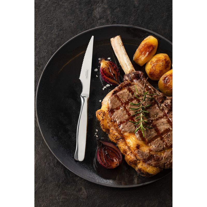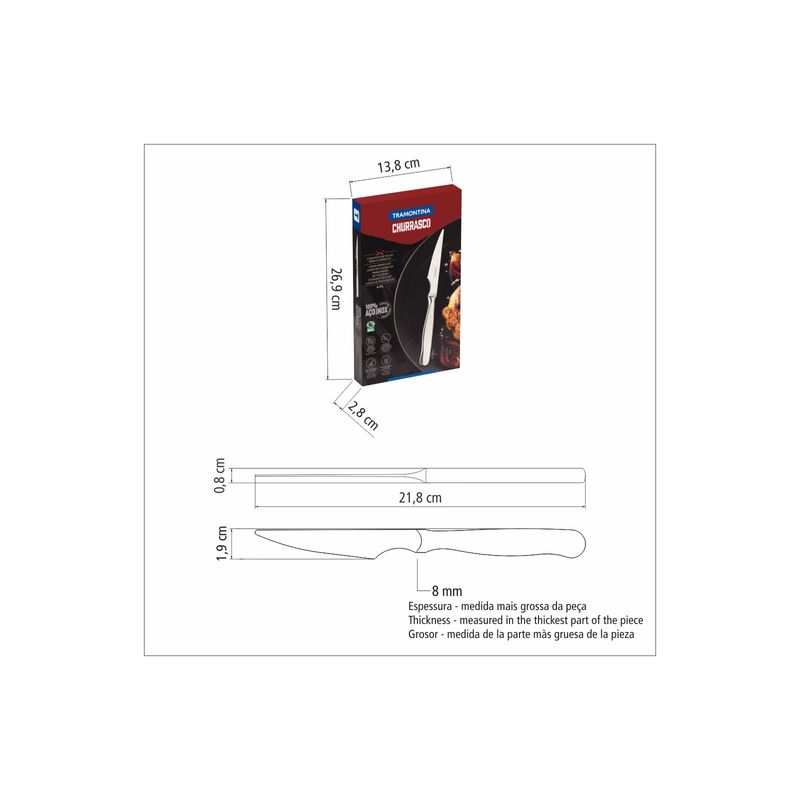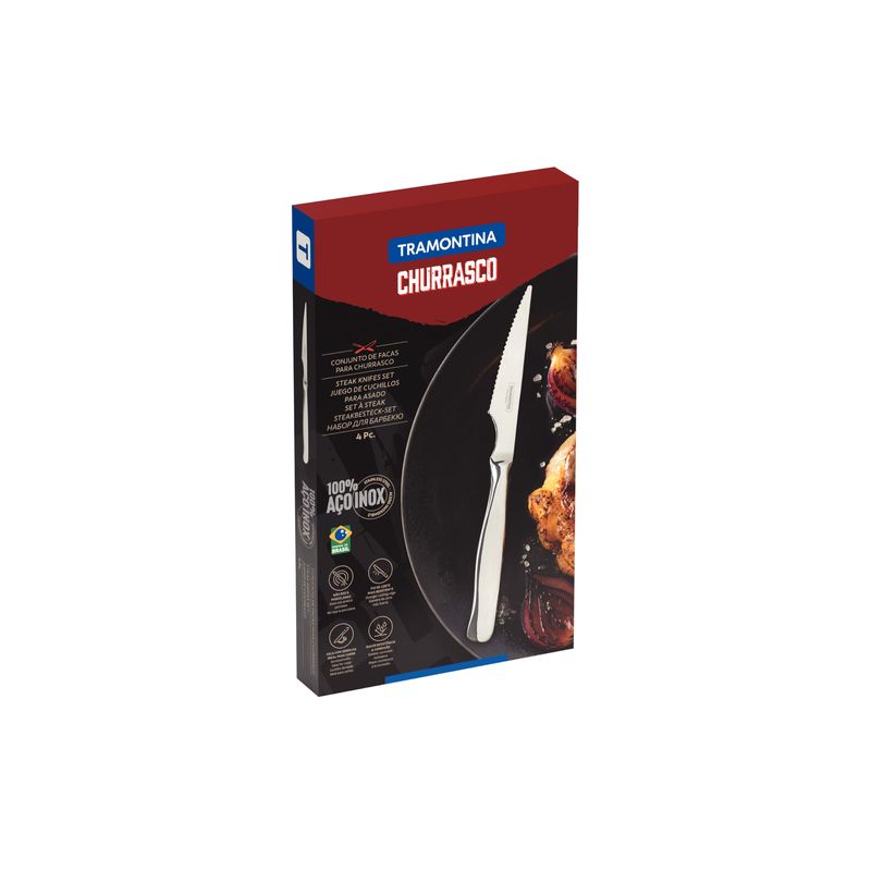 Haga de su asado un momento para disfrutar con el juego de cuchillos para asado Tramontina. Su diseño sofisticado traerá, a la mesa mucha más elegancia. Las piezas son de acero inoxidable, lo que permite aún más durabilidad y una excelente conservación de sus características originales. Los cuchillos cuentan con una lámina templada, lo que garantiza más durabilidad al filo de corte y más resistencia a la corrosión, y por su característica de templabilidad, no arañan la porcelana. Además, poseen un equilibrio armónico entre mango y lámina. Su mango permite un manejo mucho más cómodo, pues garantiza la adaptación a la palma de la mano.
