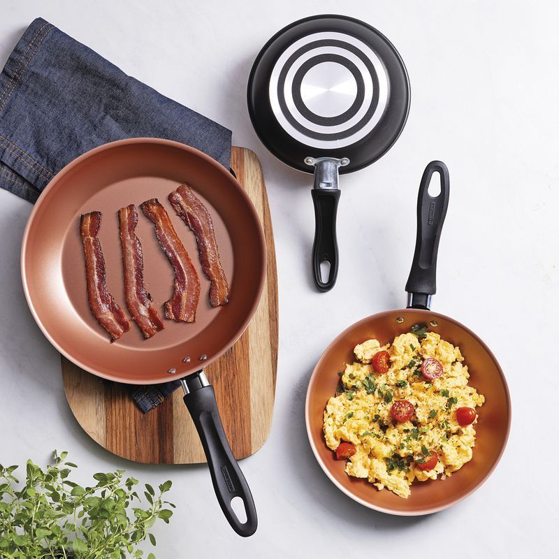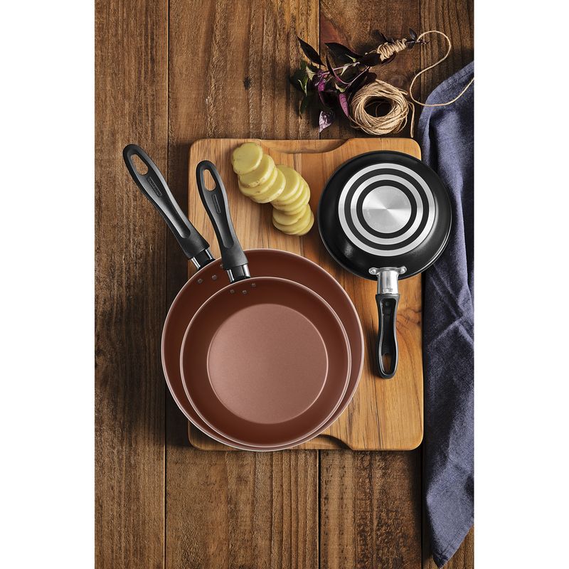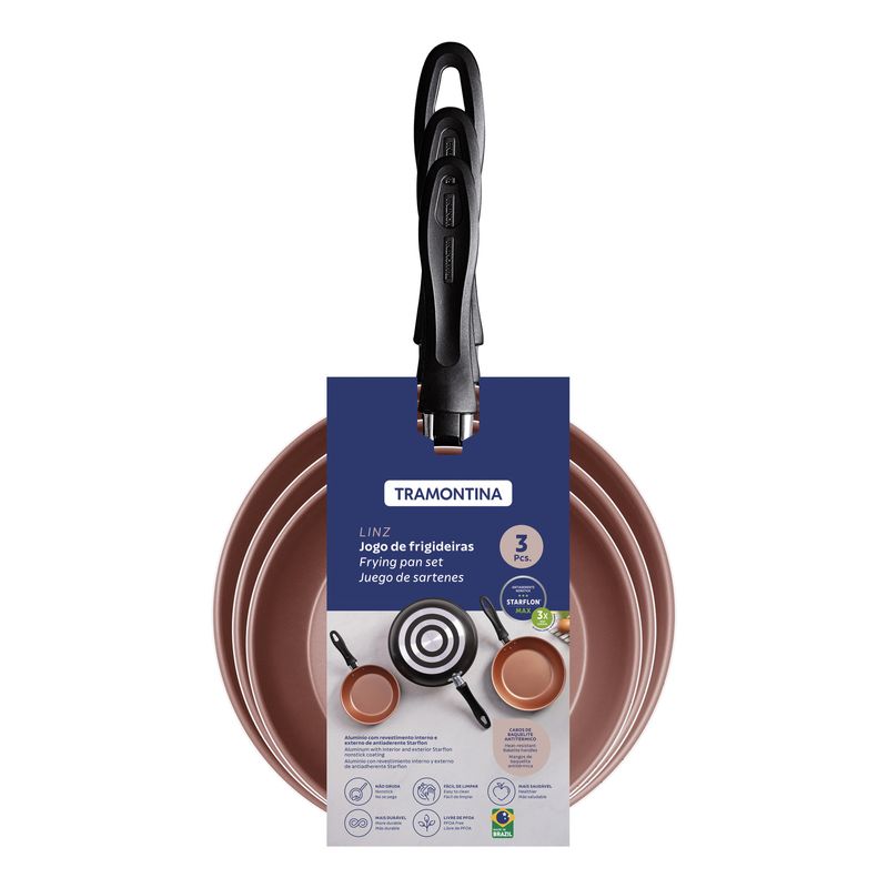El juego de sartenes Tramontina Linz con revestimiento interno con antiadherente Starflon Max y externo de poliéster negro de 3 piezas le aportará mayor practicidad y versatilidad a su cocina. Desarrolladas en aluminio con revestimiento interno con antiadherente Starflon Max, las piezas cocinan los alimentos de manera rápida y uniforme, evitan que se peguen en la superficie y son muy fáciles de limpiar. Los mangos son de baquelita, un material antitérmico que proporciona mayor seguridad de manejo. ¡Su revestimiento externo es de poliéster y proporciona aún más belleza a las preparaciones!