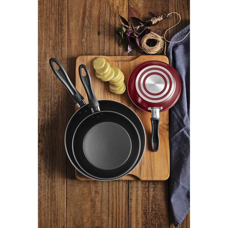 El juego de sartenes Tramontina Linz con revestimiento interno y externo con antiadherente Starflon Max rojo de 3 piezas le ofrecerá mayor practicidad y versatilidad para preparar sus comidas. Sus piezas están desarrolladas con cuerpo de aluminio de un espesor que permite una cocción rápida y uniforme y poseen revestimiento interno y externo con antiadherente Starflon Max, un material que evita que los alimentos se peguen y facilita la limpieza. Los mangos son de baquelita antitérmica, un material que ofrece más seguridad de manejo. ¡Además de todas estas características, son aptas para lavavajillas y facilitarán mucho más su rutina diaria en la cocina!