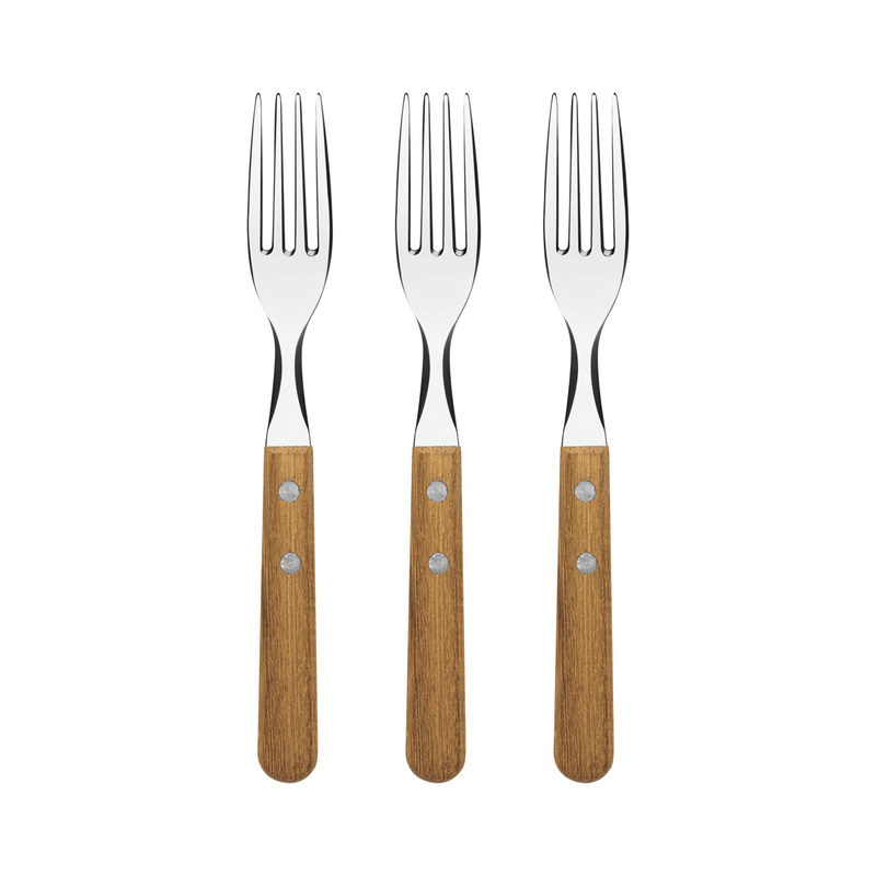 Deguste sus comidas con mayor belleza y estilo con el juego de tenedores de mesa Tramontina Dynamic con láminas en acero inoxidable y mangos de madera natural de 03 piezas. Son tres tenedores fabricados con mangos de madera natural con remaches de aluminio y láminas de acero inoxidable. Gracias a estas características, garantizan durabilidad y resistencia. Os tenedores son esenciales para que sus comidas del día a día sean aún mejores!