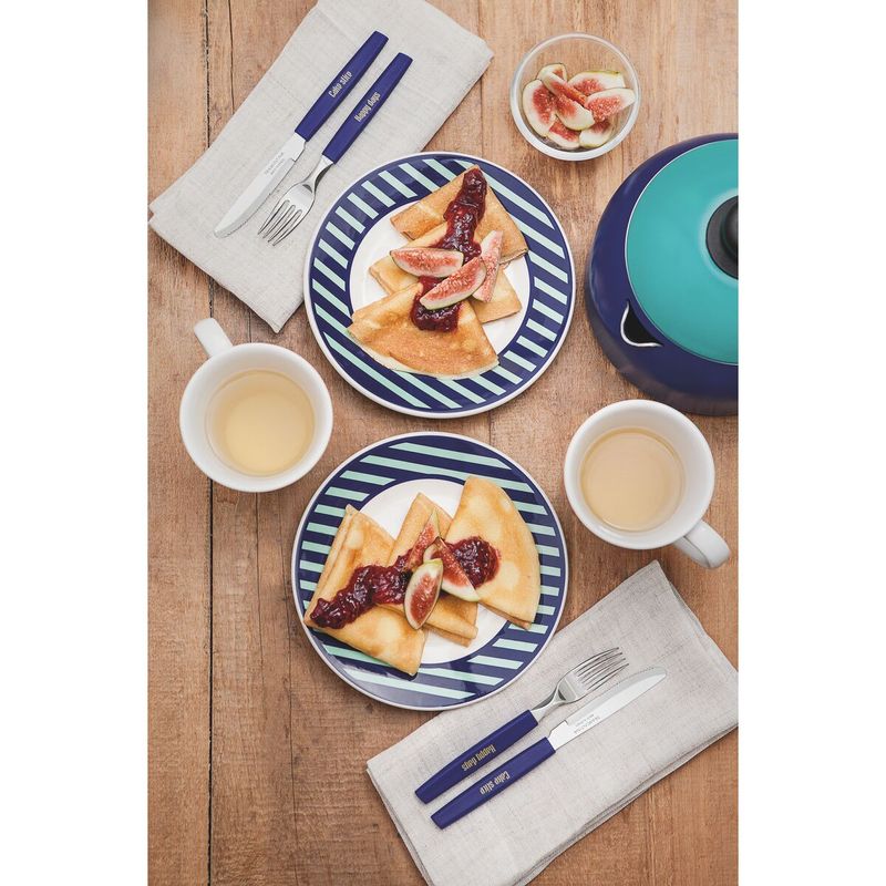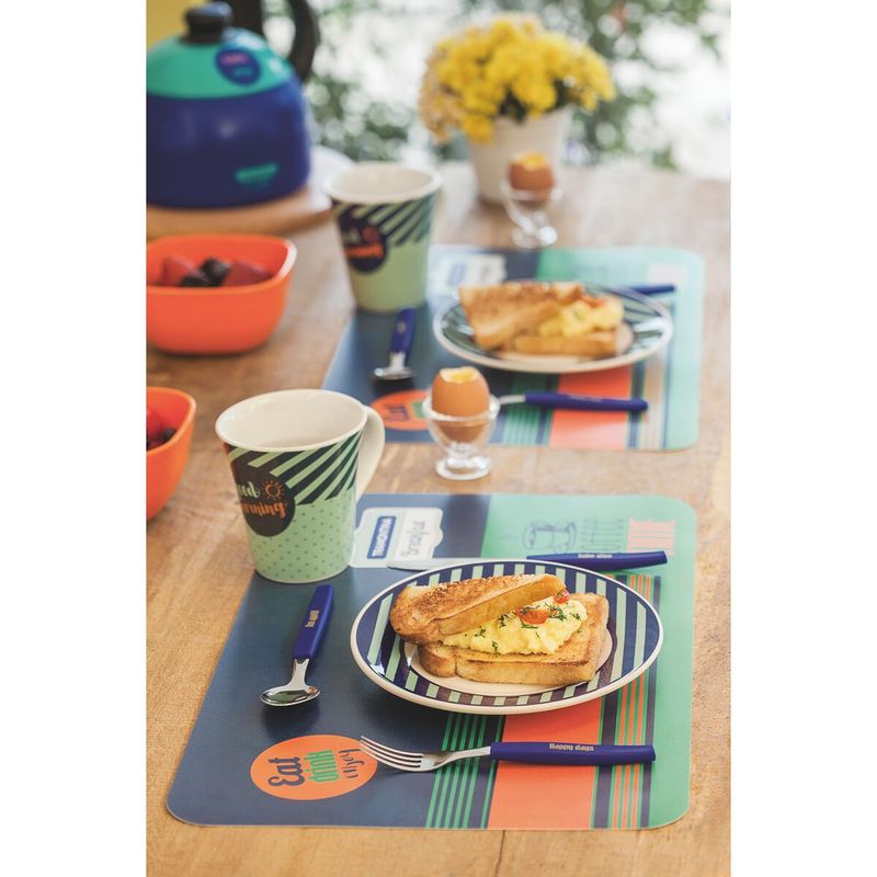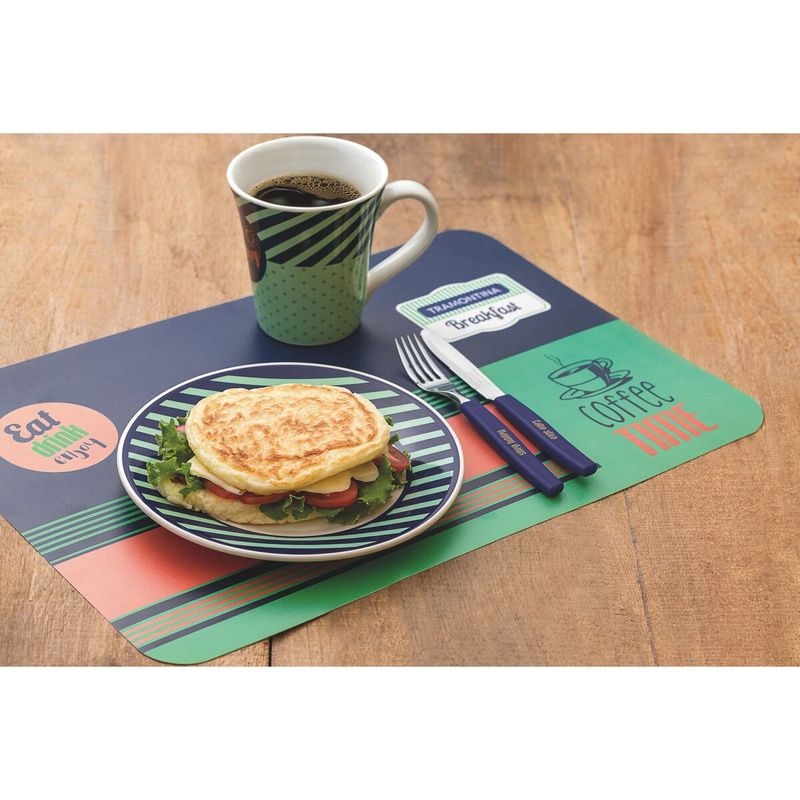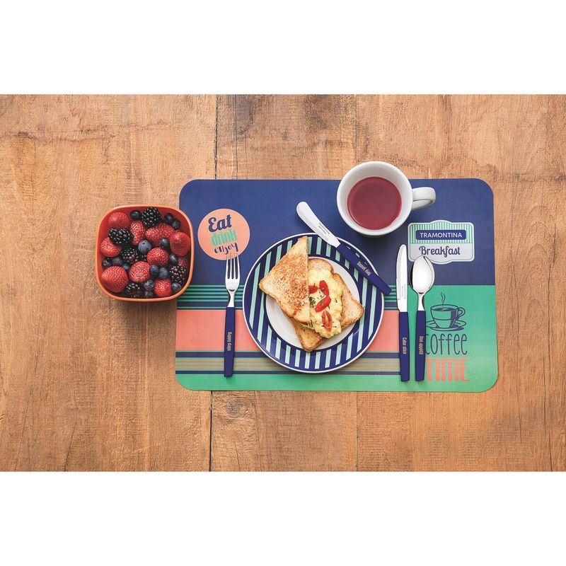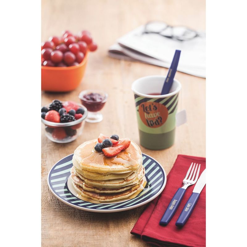 Colores marcantes y estampados invitativos hacen que la línea Desayuno sea la elección cierta de quienes prefieren comenzar el día con más energía. Son platos, tazas, bowl y cubiertos que le dan color a la mesa con diversas opciones para preparar y servir además de un juego americano que realza el placer de hacer un buen desayuno. El Juego contiene: 2 Cucharas para Desayuno, 2 Espátulas para Desayuno, 2 Tenedores para Desayuno, 2 Individuales para Desayuno, 2 Platos para Desayuno, 2 Bowls para Desayuno, y 2 Tazas para Desayuno.