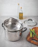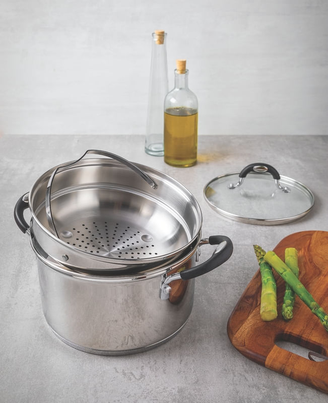 ¡Todo al mismo tiempo! El día a día será mucho más práctico y elegante con los accesorios adecuados. El juego multiuso de acero inoxidable de 4 piezas Tramontina, fue creado para simplificar las tareas de horno y cocina. El fondo triple (acero inoxidable + aluminio + acero inoxidable) distribuye el calor uniformemente, proporcionando una cocción más rápida y uniforme, ahorrando energía y manteniendo los alimentos calientes durante más tiempo. Tiene un diseño diferenciado y moderno, con terminación en alto brillo. Posee una tapa con salida de vapor y encaje perfecto.