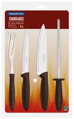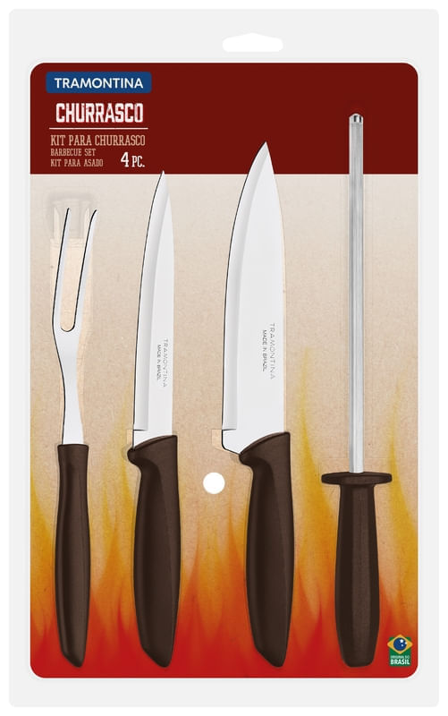 Calidad y más encanto en su cocina con la línea Plenus. Versátiles y modernos, los cubiertos pueden componer un aspecto clásico, cuando la opción sean colores sobrios o alegres, cuando la preferencia sean colores cálidos o variados. Completa, la línea cumple diferentes usos: desde la preparación de los alimentos hasta el servicio de mesa. La línea Plenus va desde el desayuno hasta la cena, desde el asado hasta la tabla de quesos. Las láminas de acero inoxidable y mangos de polipropileno son resistentes y cómodos. Con hojas fabricadas de acero inoxidable, las piezas ofrecen más calidad y resistencia, ya que son sometidas a un tratamiento térmico. El afilador tiene un eje de acero al carbono cromado para mantener tus cuchillos siempre con un buen filo. Además de embellecer los ambientes, gracias a los cables de polipropileno marrón, siguen siendo fáciles y ligeros de manejar. ¡Tramontina tiene todo para hacer tus momentos aún más deliciosos! El Juego contiene: 1 Afilador 8" Plenus, 1 Cuchillo Chef 7" Plenus, 1 Cuchillo Utility 6" Plenus, y 1 Tenedor trinchante Plenus.