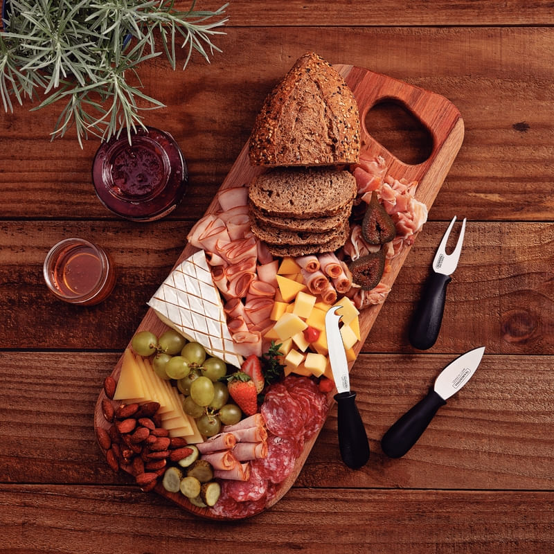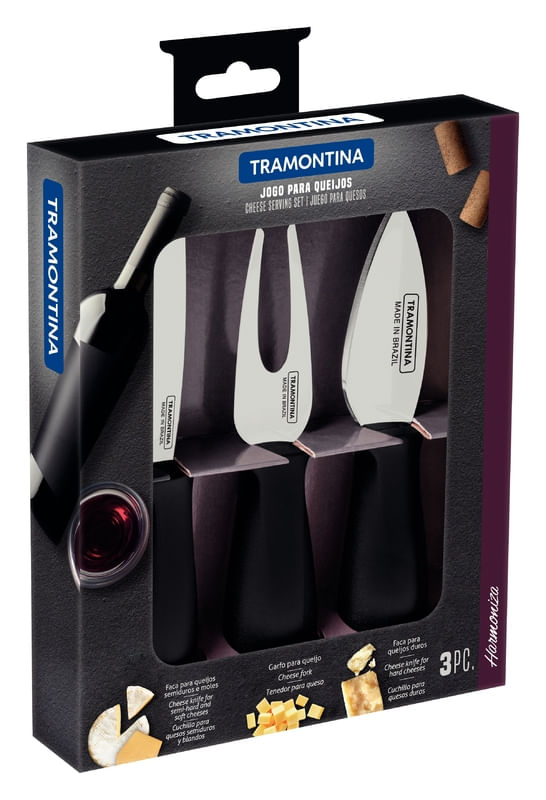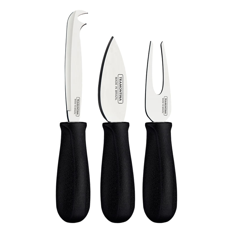 Un buen queso puede dar sofisticación y mucho sabor a varias situaciones. Por eso, aprovecha el juego para quesos Tramontina Harmoniza con lámina de acero inoxidable y mangos de polipropileno negro 3 piezas. Con él, tendrás un tenedor y dos cuchillos para quesos duros, semiduros y blandos, que cuentan con láminas de acero inoxidable con alta durabilidad del filo, debido al tratamiento térmico. Los mangos son de polipropileno, lo que los hace altamente resistentes, además de poder llevarlos al lavavajillas. Un juego que va a transformar tu casa en un lugar mucho más especial.