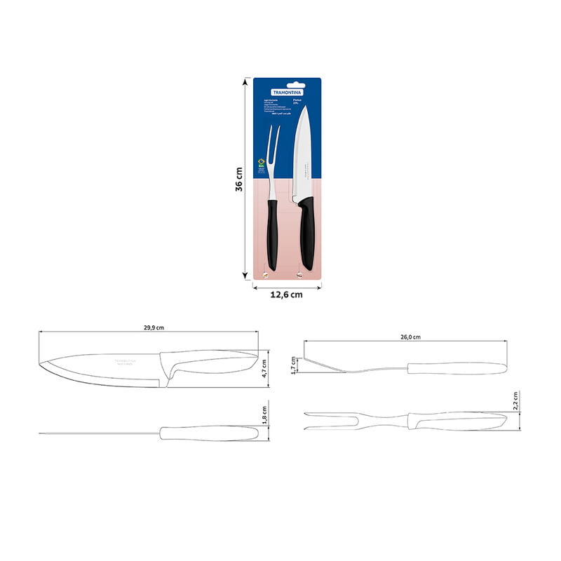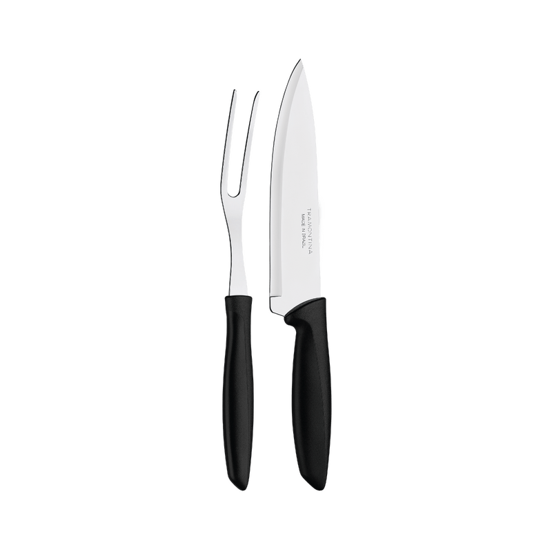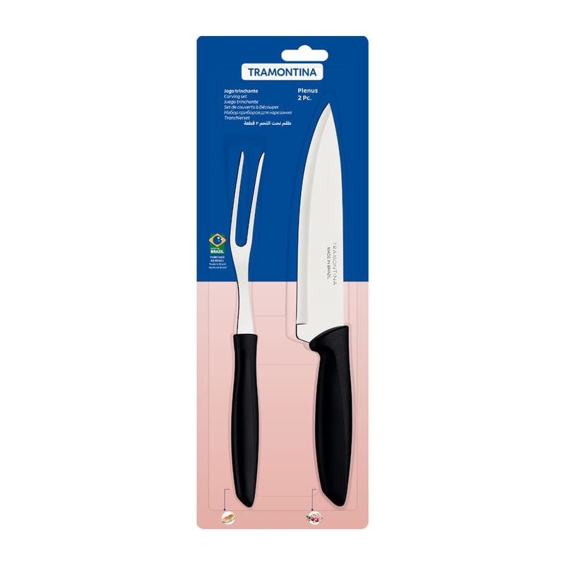 Piezas prácticas y esenciales que marcan la diferencia en nuestra cocina. Con el juego trinchante Tramontina Plenus con lámina en acero inoxidable y mango de polipropileno negro 2 piezas tendrá encanto y versatilidad en las actividades diarias. Las dos piezas se adaptan a los diferentes usos y se pueden usar desde la preparación de los alimentos hasta el servicio de mesa. Las láminas de acero inoxidable y los mangos de polipropileno son resistentes y confortables durante el uso. Fáciles de limpiar, son aptos para lavavajillas.