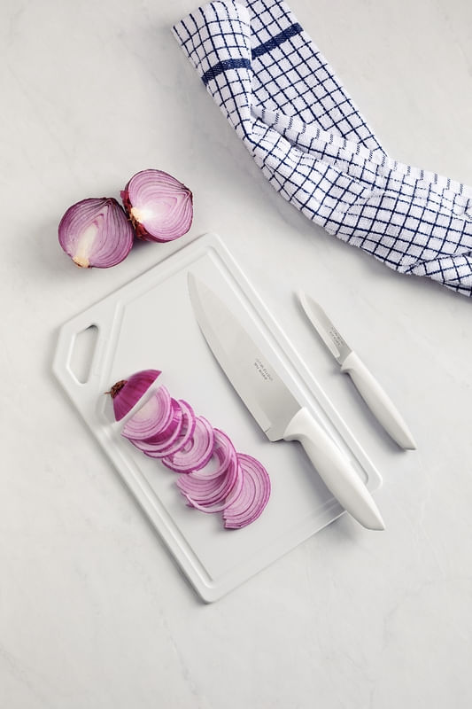 El kit para carnes y legumbres Tramontina Plenus con láminas en acero inoxidable mangos de polipropileno off white y tabla para cortar de 3 piezas es perfecto para su rutina diaria. Producido con mangos de polipropileno Blanco Crudo y láminas de acero inoxidable. Incluye tabla para cortar en polipropileno off white, que es ideal para cortar carnes y legumbres. Resistente y fácil de manipular, es apto para lavavajillas. Son piezas encantadoras y de calidad que cumplen y son fundamentales para su rutina diaria.