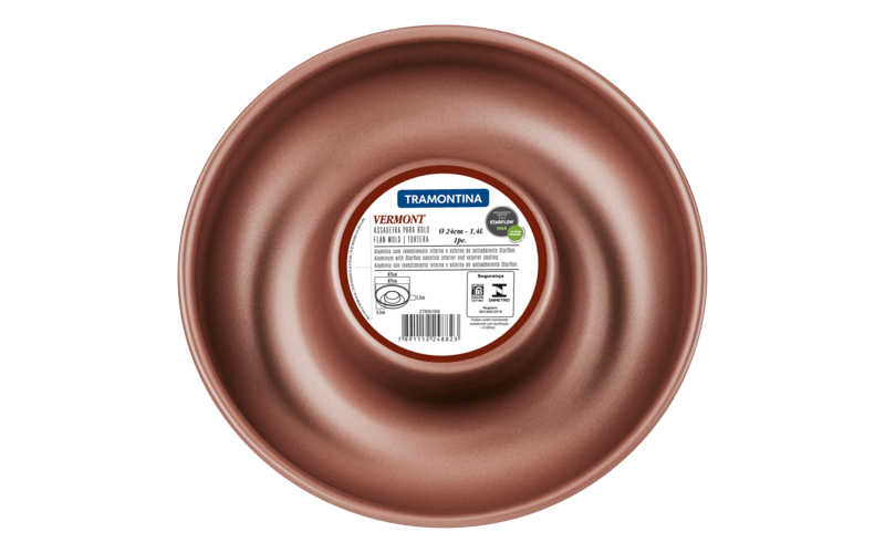 Para alegrarnos el día, nada mejor que un delicioso pedazo de torta, ¿correcto? Y con la forma para rosca Tramontina Vermont en aluminio con revestimiento interno cobre antiadherente Starflon Max grafito 24 centímetros de diámetro 1,4 litros podrá preparar las mejores recetas y agregarles su toque especial con facilidad. Incorporará en toda su cocina colores inéditos, que brindan calidad, belleza y modernidad. Está producida en aluminio con revestimiento interno y externo en antiadherente Starflon Max, ambas características proporcionan una cocción rápida y uniforme de los alimentos, evitan que estos se peguen en la superficie y también facilitan la limpieza. Además, es muy resistente, duradera y apta para lavavajillas. ¡La forma ideal para quienes quieren destacarse desde el horno hasta la mesa!
