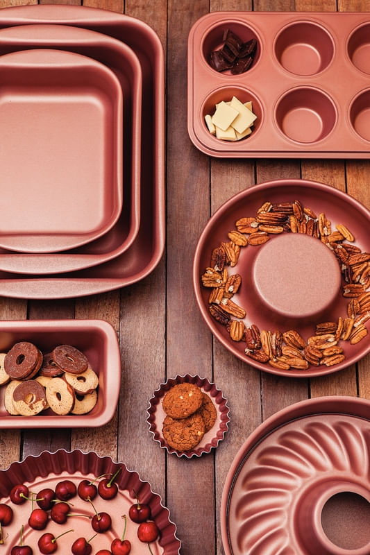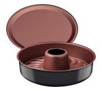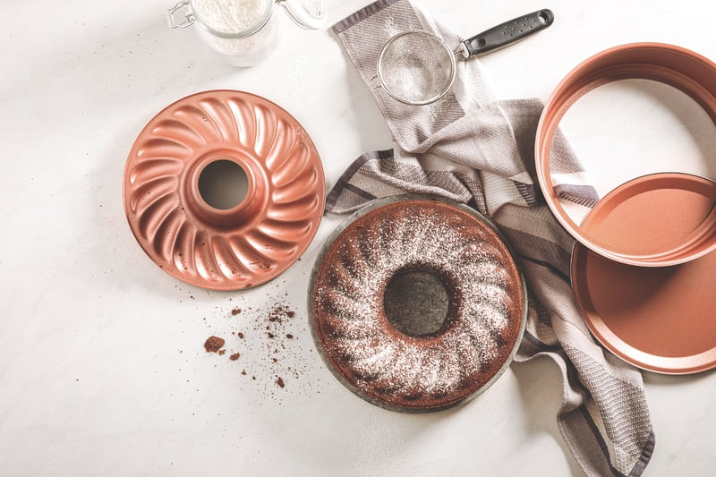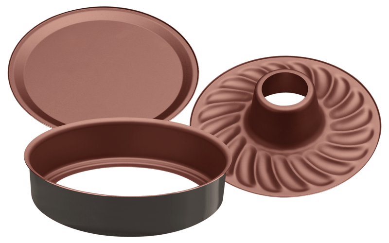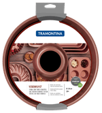 El molde para torta desmontable Tramontina Vermont en aluminio con revestimiento interno cobre antiadherente Starflon Max grafito 26 centímetros de diámetro 3,3 litros es la opción más práctica para los apasionados por las tortas y los pasteles. Con este molde podrá preparar sus recetas favoritas o incluso crear nuevas con mucha practicidad, porque incluye dos fondos distintos, uno liso y otro con agujero central, todo para ayudarle a innovar en la forma de sus tortas y pasteles. Está producido en aluminio con revestimiento interno con antiadherente Starflon Max, ambas características evitan que los alimentos se peguen en su superficie y permiten que sea mucho más fácil de limpiar. El cuerpo y su fondo liso cuentan con revestimiento externo de poliéster y el fondo estampado tiene un revestimiento externo de antiadherente, ambos materiales de excelente calidad. Con la línea Vermont, su cocina tendrá más color, modernidad y belleza, ¡todo para que pueda destacarse en todas las preparaciones!