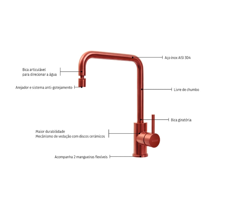 ¡El Monocomando Tramontina Angolare de acero inoxidable con acabado satinado y recubrimiento PVD Rose garantizará su éxito en la cocina! Se produce en acero inoxidable con recubrimiento PVD Rose (deposición física de vapor) es un proceso utilizado para producir un vapor metálico que se puede depositar en ciertos artículos como si se tratara de un recubrimiento de colores finos y tiene mecanismo de sellado con cerámica de disco, también le permite ahorrar agua debido a su aireador y sistema de goteo , mientras que la boquilla articulada gira 360°, facilitando sus tareas diarias. Este mezclador de grifos es el ayudante perfecto para facilitar su rutina diaria y traer funcionalidad a su hogar!