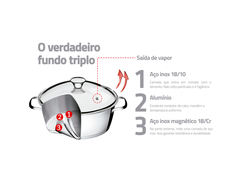 ¡La olla Allegra de acero inoxidable con fondo triple y tapa de vidrio de 20 cm de diámetro y 4,4 l Tramontina, será la protagonista de su cocina! Ideal para la preparación de alimentos en el horno y la cocina, es versátil y muy práctica, perfecta para la preparación de caldos y sopas. Hecha totalmente de acero inoxidable con fondo triple (acero inoxidable + aluminio + acero inoxidable), característica que distribuye el calor de manera uniforme, proporcionando una cocción más rápida y manteniendo los alimentos calientes durante más tiempo, además de ahorrar más energía. Es una pieza moderna, con una elegante terminación en alto brillo, que elevará el nivel de su cocina y que también viene con una tapa de vidrio con encaje perfecto y salida de vapor. Asegure toda la versatilidad de esta pieza, que se puede usar en varios tipos de cocinas y se puede lavar diariamente en el lavavajillas. ¡Obtenga la suya y prepare las mejores recetas!