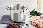 Una cocina profesional debe ser impecable y brillar para que el servicio sea ejecutado con maestría. Con la olla alta Tramontina de acero inoxidable fondo triple 28 cm de diámetro 15,7 L todo cocinero podrá realizar sus recetas sin preocupaciones técnicas, pensando solamente en el sabor y en el aroma del plato. El fondo triple (acero inoxidable + aluminio + acero inoxidable) de la olla alta permite que la cocción de los alimentos sea mucho más rápida, pues distribuye el calor de forma uniforme, además de mantener la comida caliente por más tiempo. Los mangos y asas son fijados por soldadura de punto, lo que genera un refuerzo extra, promoviendo un manejo seguro y cómodo. Además, cuenta con una terminación con franja satinada y alto brillo, trayendo para su cocina los productos de la línea Professional, mucho más glamur.