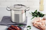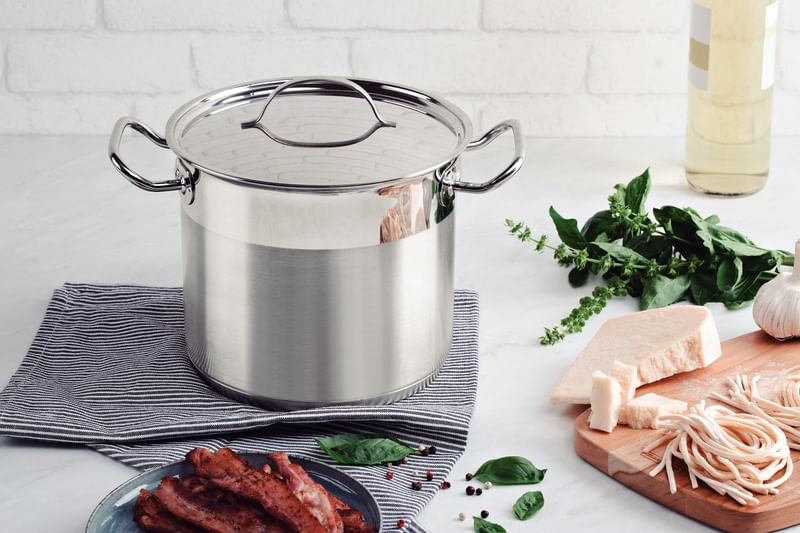 Con la olla alta Tramontina de acero inoxidable fondo triple con tapa detalle satinado 20 cm de diámetro 5,7 L podrá hacer esas recetas que le encantan para dejar a todo el mundo feliz y satisfecho. Su fondo triple (acero inoxidable + aluminio + acero inoxidable) permite que el calor sea distribuido igualmente por toda la olla, haciendo que la cocción sea ágil y uniforme. Las asas largas y mangos tubulares de acero inoxidable permiten un manejo profesional, pues son fijados por soldadura de punto, lo que trae más seguridad en la manipulación de la olla. La línea Professional está hecha para dejar su cocina aún más profesional, con el brillo y la elegancia que sólo el acero inoxidable tiene.