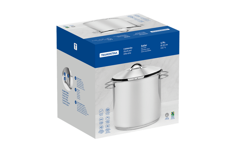 ¿Qué piensa de liberar el gran cocinero que lleva dentro? Con la olla alta Tramontina de Acero Inoxidable fondo triple con tapa y asas a 28 cm de diámetro 15,7 L podrá preparar platos sorprendentes, llenos de sabor e inolvidables por mucho tiempo. La línea Solar de Tramontina proporciona practicidad y durabilidad para quien le encanta estar en la cocina y necesita herramientas que atiendan todas sus necesidades. Hecha de acero inoxidable con fondo triple (acero inoxidable + aluminio + acero inoxidable), la olla alta de Tramontina garantiza una cocción rápida y uniforme de los alimentos. Por contar con un fondo de acero inoxidable, los alimentos no corren riesgo de contaminarse con residuos, manteniéndolos sanos y con todo su sabor. Ahora puede explorar todo el universo gastronómico.