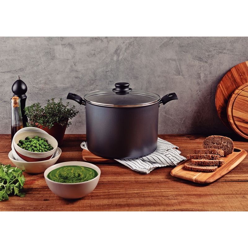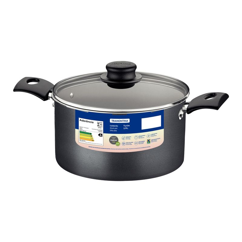 La olla alta Tramontina Turim en aluminio con revestimiento interno y externo en antiadherente Starflon Max plomo de 24 centímetros de diámetro y 7,9 litros posee el tamaño ideal para preparar deliciosas comidas para toda su familia. Desarrollada en aluminio y el revestimiento antiadherente Starflon Max, la olla alta asegurará que los alimentos se cocinen de manera rápida y uniforme, sin que se peguen en su superficie. Sus asas y su agarrador son de material antitérmico y ofrecen un manejo mucho más seguro y cómodo, gracias a que no calientan. La tapa de vidrio templado con bordes de acero inoxidable y salida de vapor facilita la preparación de los alimentos y acompañar la ejecución.Además, es muy práctica, fácil de limpiar y es apta para el lavavajillas. Con la calidad reconocida de Tramontina, puede confiar en este artículo para que sus experiencias culinarias sean aún más placenteras y sabrosas.