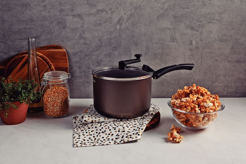 Para preparar palomitas de maíz crocantes para la merienda de la tarde, la olla para palomitas de maíz Tramontina en aluminio con revestimiento interno y externo en antiadherente Starflon Max plomo de 22 centímetros de diámetro y 4,8 litros es la elección ideal. Producida con cuerpo en aluminio con antiadherente Starflon Max, permite que el maíz explote de manera rápida y uniforme, sin que se pegue en la superficie. La olla para palomitas de maíz incluye tapa de vidrio templado y no gira durante la preparación. El mango es de baquelita antitérmica con manija y traba de nylon. Ambos materiales son antitérmicos y brindan más seguridad y comodidad durante el uso. ¡Además de estas características, la olla para palomitas de maíz es apta para lavavajillas y mejorará sus tareas en la cocina!