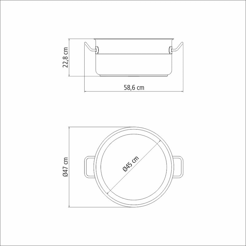 ¡Todo chef necesita la olla rasa Empresarial de acero inoxidable con fondo triple sin tapa de 45 cm de diámetro y 35l Tramontina! La elección perfecta para cualquier cocina profesional, esta pieza está hecha totalmente de acero inoxidable y mantiene los alimentos sanos, ya que no suelta ningún tipo de residuo. Además, cuenta con la tecnología de fondo triple (acero inoxidable + aluminio + acero inoxidable), que distribuye el calor uniformemente, proporcionando una cocción más rápida, ahorrando energía y dejando los alimentos calientes durante más tiempo. Perfecta para las necesidades de tu cocina, posee asas largas fijadas por soldadura de punto, lo que garantiza más resistencia y un manejo más cómodo. Su aspecto moderno y la terminación con franja satinada y alto brillo, la convierten en una pieza impresionante. Es práctica y versátil, ya que se puede usar en cocinas a gas, eléctricas, sobre vidriado cerámico y de inducción. ¡Impresionará incluso a los chefs más expertos!