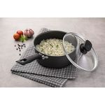 La olla es uno de los utensilios indispensables en la cocina. Y por eso puede contar con la olla Tramontina Loreto en aluminio con revestimiento interno y externo de antiadherente Starflon Max con mango de baquelita y tapa de vidrio de 16 centímetros de diámetro y 1 4 litros grafito. Producida en aluminio con espesor que permite la cocción rápida y uniforme de los alimentos, cuenta con revestimiento interno y externo de antiadherente Starflon Max que no es perjudicial a la salud. Tiene más durabilidad y facilidad de limpieza, gracias a que evita que los alimentos se peguen en la superficie. Su mango producido en baquelita antitérmica ofrece seguridad durante el manejo, porque no calienta. Acompaña una tapa de vidrio con borde de acero inoxidable, que brinda un toque de elegancia a la pieza. Un ítem práctico, fácil de limpiar y apto para lavavajillas, ideal para preparar pequeñas comidas.