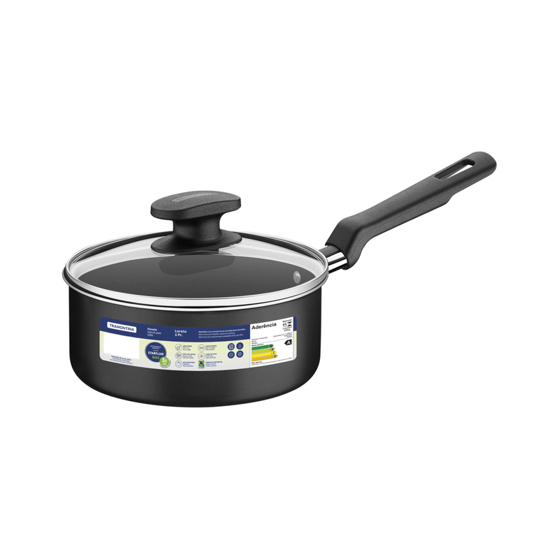 La calidad de la olla resalta el sabor de la receta. Por eso es tan importante tener en su cocina la olla Tramontina Loreto en aluminio con revestimiento interno y externo de antiadherente Starflon Max con mango de baquelita y tapa de vidrio de 18 centímetros de diámetro y 2 0 litros grafito. Con cuerpo producido en aluminio con revestimiento interno y externo de antiadherente Starflon Max, su espesor permite la cocción rápida y uniforme de los alimentos. Su revestimiento de antiadherente no es perjudicial a la salud y asegura que los alimentos no se peguen en la superficie, porque es de fácil limpieza. El mango de baquelita es antitérmico y permite un manejo con seguridad, debido a que no calienta. La tapa de vidrio templado con borde de acero inoxidable ofrece un toque de elegancia a la pieza. Además, es resistente, durable y muy práctica, apta también para lavavajillas. Destáquese con Tramontina para que sus recetas tengan un sabor inolvidable!