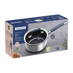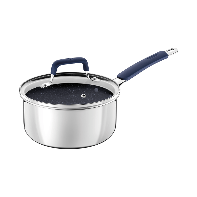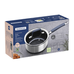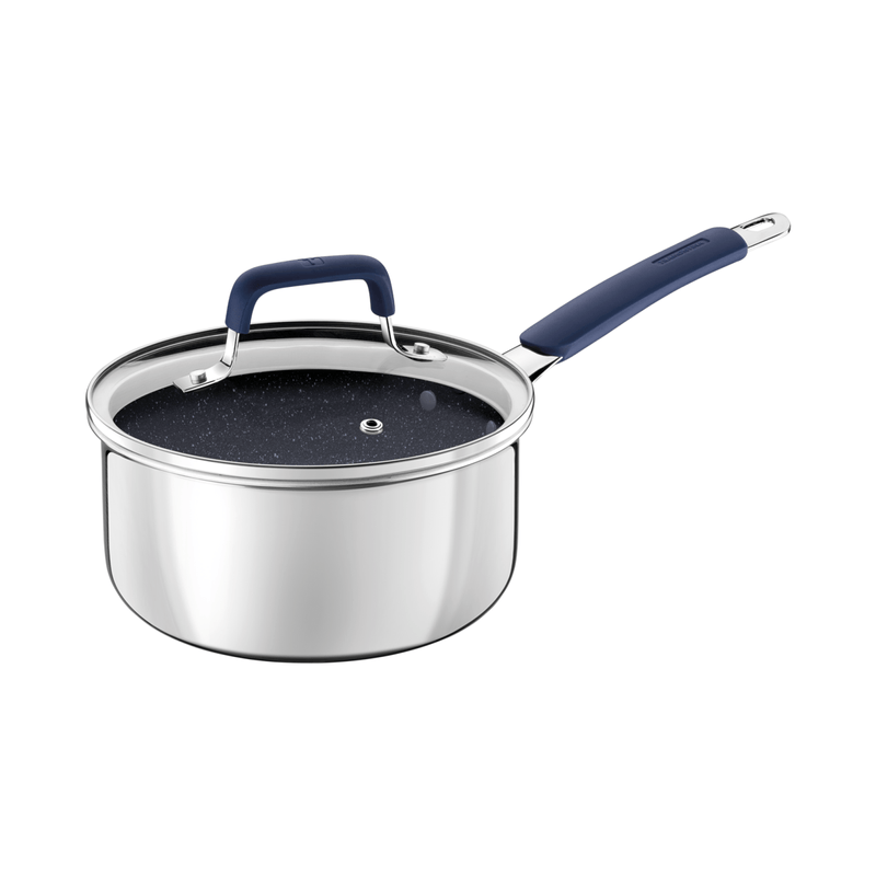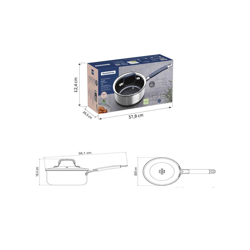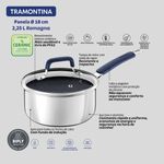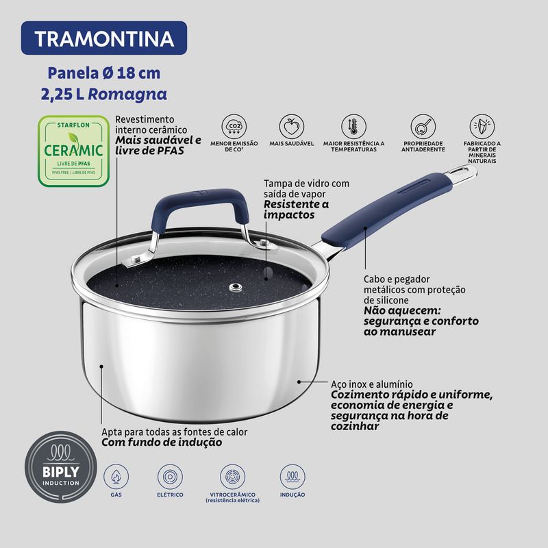 La olla Tramontina Romagna en acero inoxidable y aluminio con revestimiento interno cerámico Black Stone de 18 centímetros de diámetro y 2 25 litros combina estilo y funcionalidad, y es ideal para preparar porciones medianas de alimentos como sopas, arroz y carnes. El revestimiento cerámico permite una cocción uniforme y facilita la limpieza, lo que ofrece practicidad para el día a día. La Tecnología Biply Induction, que combina acero inoxidable y aluminio, permite que esta olla sea compatible con todo tipo de cocinas, incluso las de inducción. Las asas ergonómicas ofrecen más seguridad durante el uso y el revestimiento cerámico de color Black Stone le aporta un aspecto moderno y sofisticado a su cocina. Ideal para quienes buscan practicidad sin renunciar al diseño elegante y funcional.