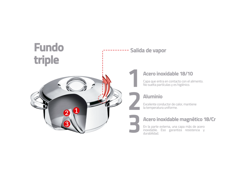 Sea para fritar, asar o gratinar la olla de acero inoxidable con fondo triple con tapa y mango 20 cm de diámetro 2,9 L Solar es la elección perfecta para quien quiere preparar recetas inolvidables y conquistar el corazón de todos. La olla de acero inoxidable de Tramontina está hecha con la más alta tecnología, sin descuidar el diseño y funcionalidad. Contando con un fondo triple (acero inoxidable + aluminio + acero inoxidable), permite que los alimentos sean cocinados de forma uniforme, manteniendo el calor y resaltando el sabor de sus recetas. Llegó la hora de descubrir el chef que hay en usted.
