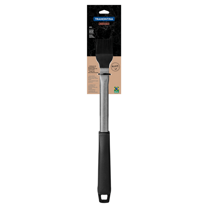 Condimentar y marinar la carne de su asado ahora es mucho más fácil con el pincel Churrasco Black Tramontina con cerdas en silicona, estructura de acero inoxidable y mango de polipropileno negro. Es resistente a temperaturas de hasta 230 grados y le otorgará mucha practicidad y calidad, porque está compuesto por una estructura de acero inoxidable, mango de polipropileno y cerdas de silicona. ¡Asegure el suyo y transforme la hora de preparar su asado!
