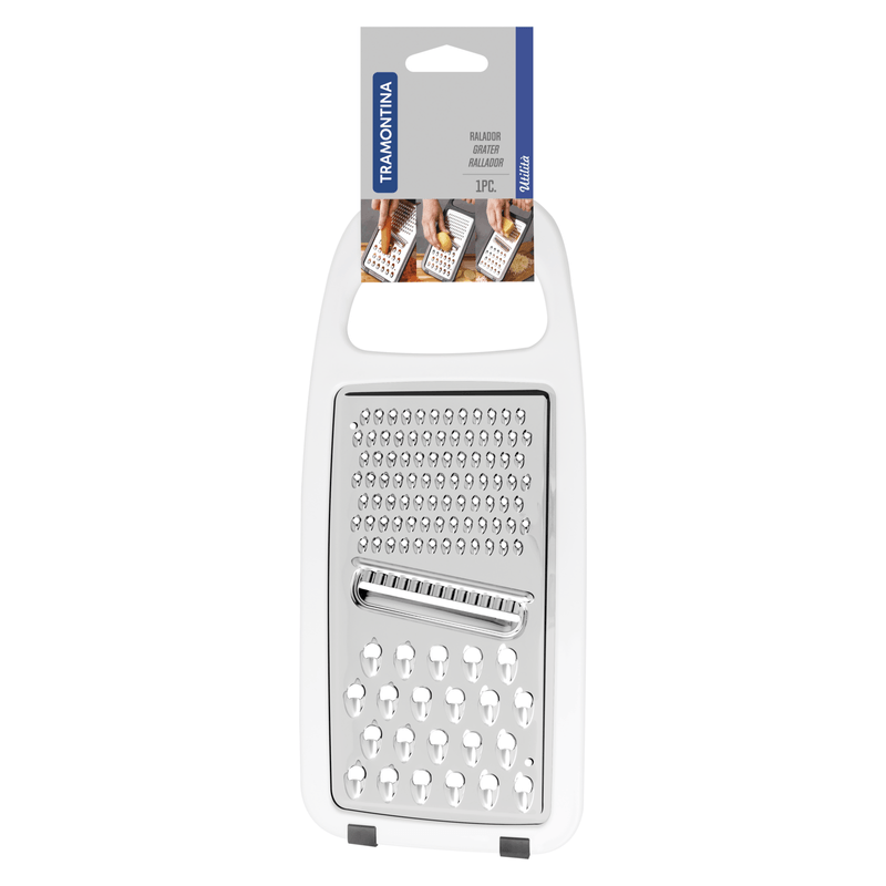 Realice diferentes tipos de preparaciones con el Rallador Tramontina Utilitá en Acero Inoxidable y ABS con Base Revestida de Goma Blanco. Le ofrecerá más practicidad para su rutina diaria en la cocina. Diseñado por la línea Utilita , que cuenta con una amplia variedad de utensilios para hacer la cocina más completa y su rutina aún más fácil. Con un diseño diferenciado, moderno y varias opciones de colores para que elija el que mejor combina con su personalidad. El rallador está fabricado con una lámina de acero inoxidable, lo que garantiza su durabilidad y mantiene sus características originales durante más tiempo. Tiene un mango de ABS con base revestida de goma antideslizante, que favorece un manejo cómodo y seguro.