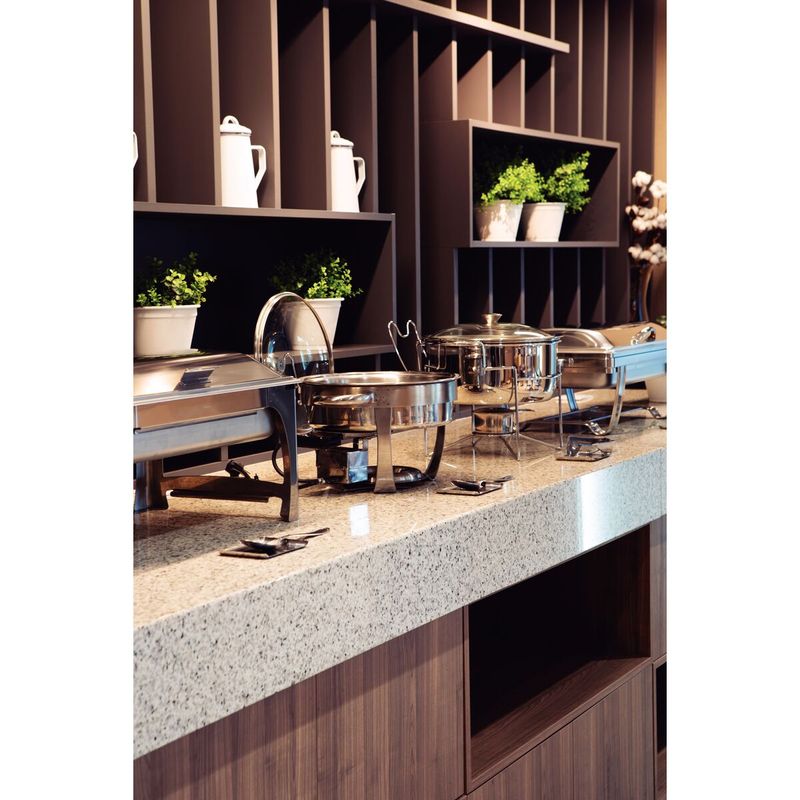 Ofrece una presentación sofisticada en tu evento con el rechaud rectangular de acero inoxidable baño maría, tapa removible con brasero y cuba 1/2 y 8 4l Tramontina. Te permitirá mostrar tus recetas y dejar maravillados a tus invitados, además de hacer más práctico el momento de servir. El producto está hecho totalmente de acero inoxidable y no suelta ningún tipo de residuo en los alimentos, manteniéndolos sanos y en la temperatura ideal. Las hornallas de acero inoxidable garantizan que los platos se mantengan calientes durante más tiempo. La cuba 1/2 de alta resistencia, cuenta con bordes redondeados y paredes lisas, lo que facilita la limpieza. El agua condensada en la tapa vuelve a la cuba. Por lo tanto, no tienes nada de qué preocuparte. Tu evento será aún más hermoso y elegante con el rechaud rectangular Tramontina.