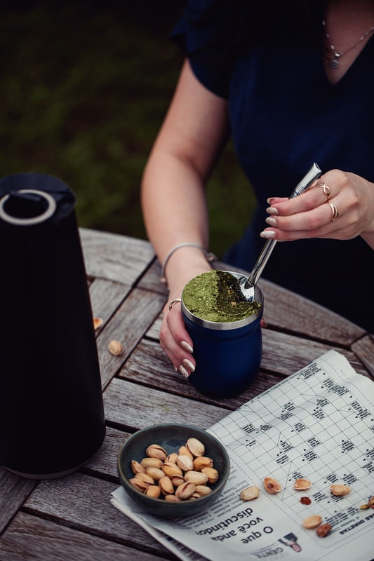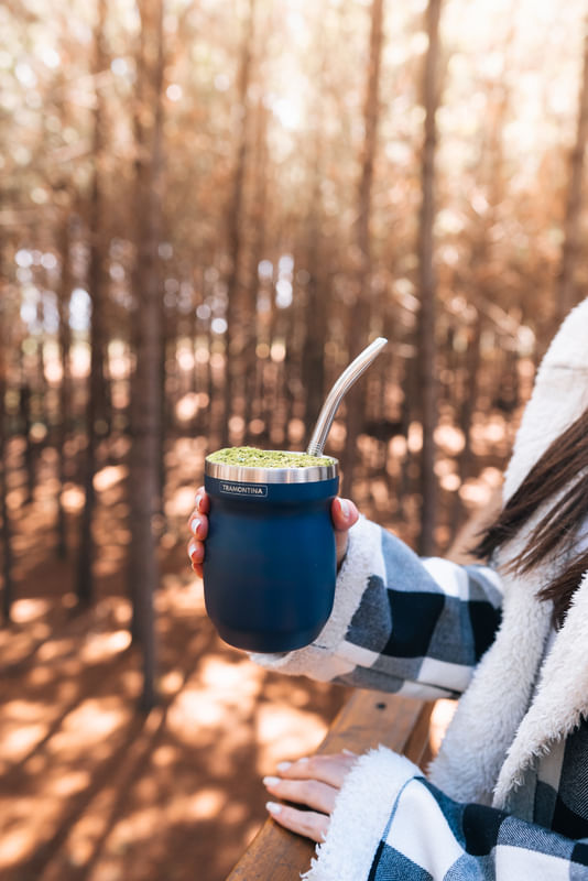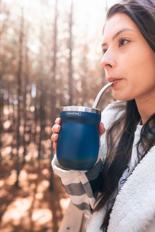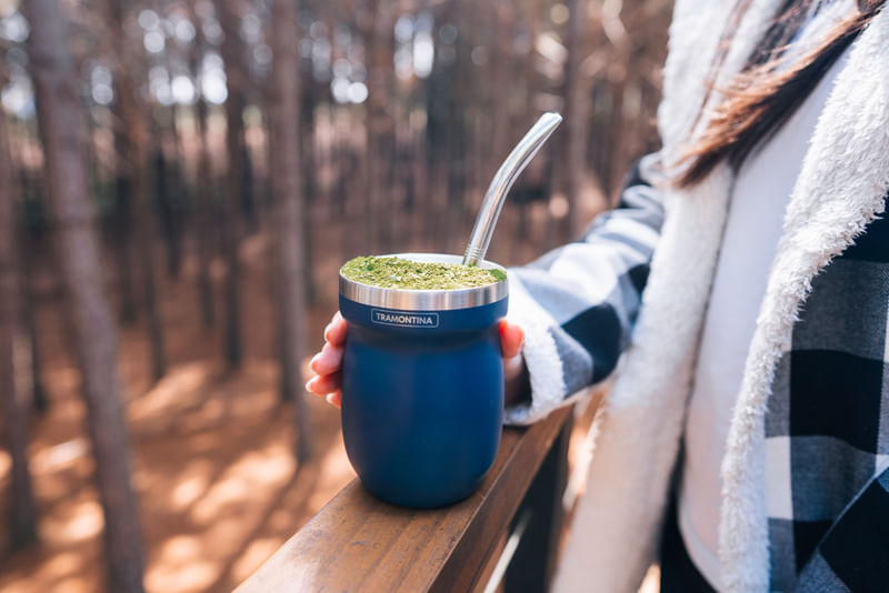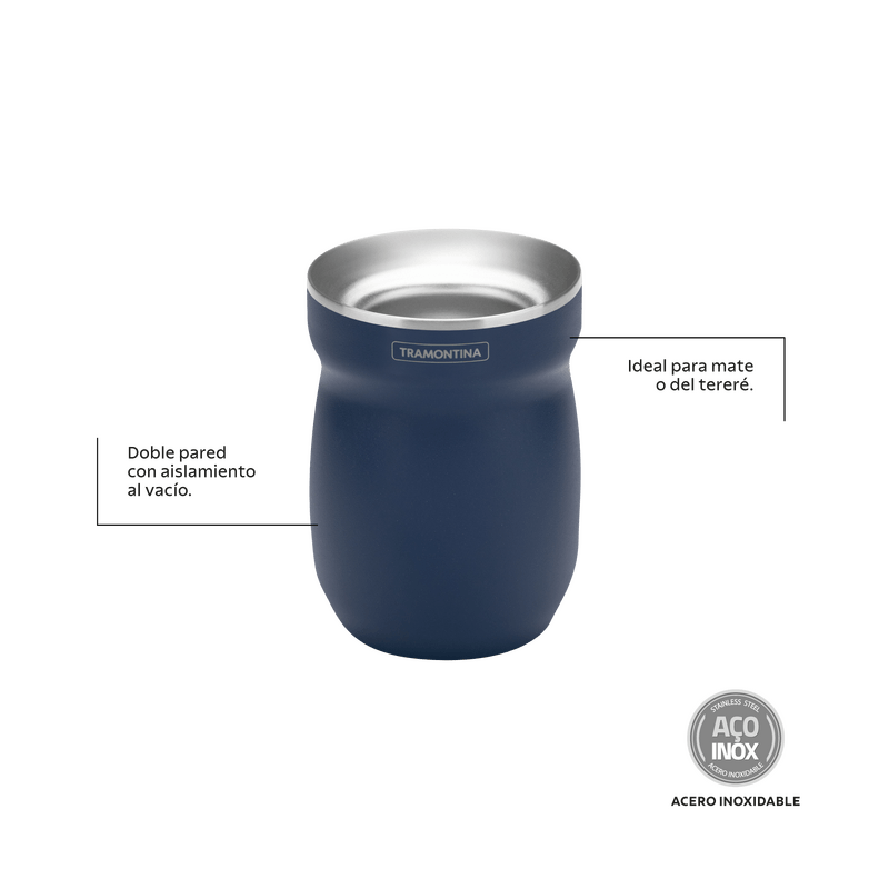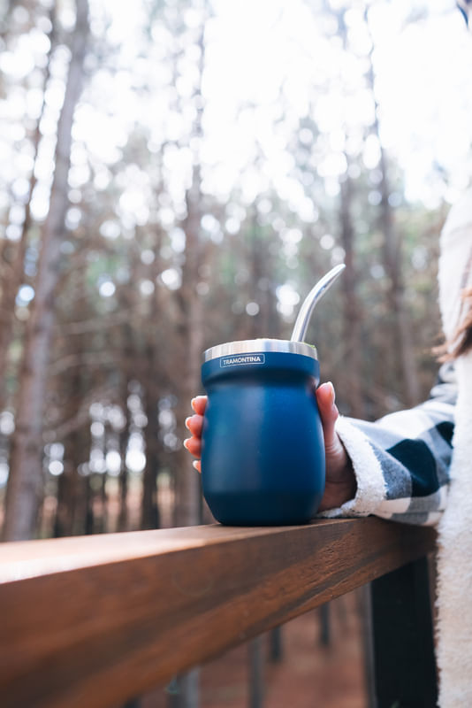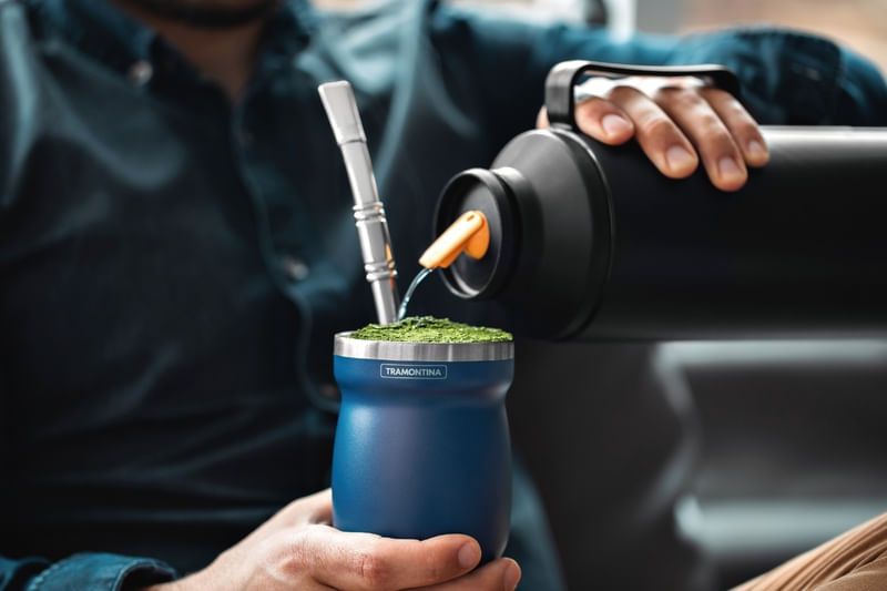 Para disfrutar su mate o tereré, que ya son parte de su rutina, cuente con la Recipiente para Mate Tramontina azul de 240 ml. Fue desarrollada con tecnología de alta calidad con doble pared de acero inoxidable y aislamiento al vacío, que mantiene las bebidas frías o calientes durante más tiempo y evita que la pared externa se caliente con bebidas calientes o transpire con bebidas heladas. La calabaza es libre de BPA, no mancha, no se rompe, no retiene olores y es muy fácil de limpiar. ¡Esto garantiza mayor practicidad y funcionalidad para su día a día!