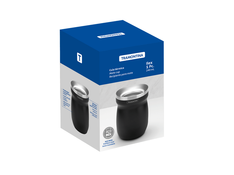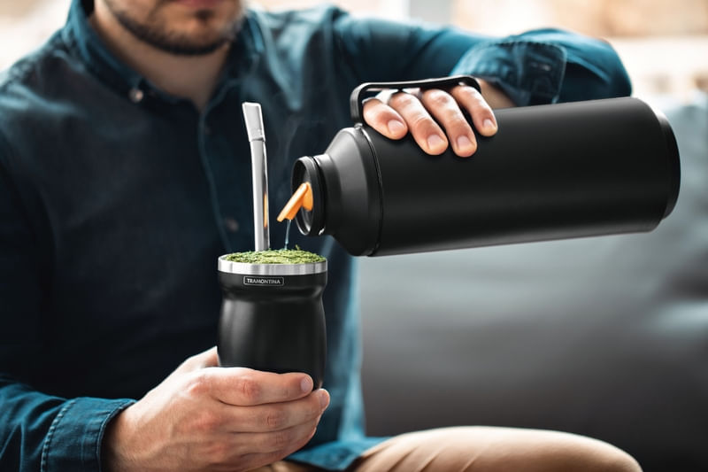 Mate o tereré. No importa cuál sea su bebida tradicional preferida, será mucho más especial con la Recipiente para mate Tramontina negra de 240 ml. Desarrollada para conservar sus bebidas a la temperatura ideal por más tiempo, dispone de doble pared en acero inoxidable con aislamiento al vacío. Es una calabaza libre de BPA que es fácil de limpiar, no mancha, no se rompe y no retiene olores. ¡Una calabaza de alta calidad que no transmite la temperatura a su mano y que será su aliada durante las horas más especiales del día!