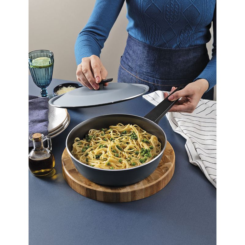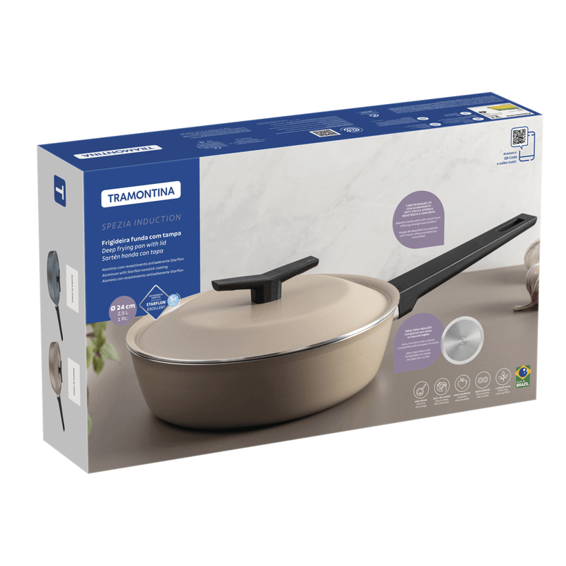 Para que sus platos sean aún más sabrosos con la sartén honda Tramontina Spezia Induction en aluminio con revestimiento interno y externo en antiadherente Starflon Excellent azul con tapa de 24 centímetros y 2 5 litros. Fabricada en aluminio de 3 milímetros de espesor, garantiza un calentamiento rápido y uniforme, mientras que el revestimiento antiadherente Starflon Excellent evita que los alimentos se peguen y facilita la limpieza. Incluye tapa de aluminio que aporta seguridad y ligereza. Es compatible con cocinas a gas, eléctricas, vitrocerámicas y de inducción.