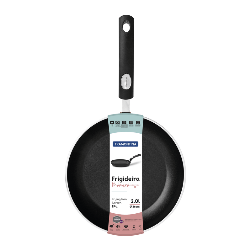 Con la sartén Tramontina Mónaco Induction en aluminio con revestimiento interno y externo de antiadherente Starflon Premium negro de 26 centímetros de diámetro y 2 litros podrá garantizar el mejor utensilio para el éxito de sus recetas! Fabricada en aluminio con revestimiento de antiadherente Starflon Premium, garantiza que los alimentos no se peguen en la superficie, es más durable y no perjudicial a la salud. El mango metálico con protección de silicona reduce la propagación del calor, aumentando la seguridad y mejorando su manipulación. Además, es muy fácil de limpiar y apta para el lavavajillas. La elección perfecta para garantizar la cocción de sus alimentos de manera rápida y uniforme!