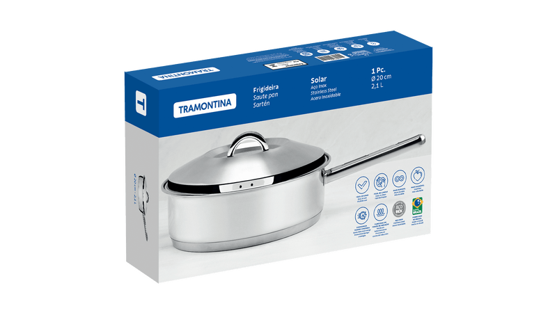 Cocinar es una aventura y un camino de descubrimiento de sabores, texturas y colores. El sartén de acero inoxidable con fondo triple con tapa y mango 20 cm de diámetro 2,1 L usa la más alta tecnología para la fabricación de ollas de acero inoxidable, para garantizar que la preparación de los ingredientes sea única y hecha con excelencia, sin pérdida de nutrientes y sin alterar el sabor original del alimento. El sartén de la línea Solar puede ser utilizado tanto en la cocina como en el horno, ¿quiere un truco de uso? Basta sellar la carne y terminar la cocción en el horno para garantizar una carne jugosa, suave y llena de sabor.