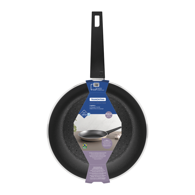 Para quienes valoran la practicidad y la calidad, la sartén Tramontina Spezia Induction en aluminio con revestimiento interno y externo en antiadherente Starflon Excellent azul ardosia de 24 centímetros de diámetro y 1 2 litros de capacidad es ideal. El aluminio antiadherente Starflon Excellent asegura un calentamiento rápido y uniforme. Con asas de baquelita softtouch. Se la puede usar en cocinas a gas, eléctricas, vitrocerámicas y de inducción.