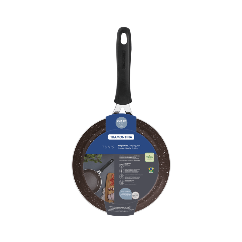 Actualice sus habilidades culinarias con la sartén Tramontina Tunis en aluminio con revestimiento interno cerámico y externo siliconado rosa trufado de 24 centímetros de diámetro y 1 6 litros. Es la elección perfecta para mejorar la preparación de sus comidas, con una estructura fabricada en aluminio con revestimiento interno cerámico y externo siliconado que permite una cocción rápida y eficiente de los alimentos. Con un diseño elegante y funcional, esta sartén garantiza durabilidad y seguridad durante el uso, gracias a su mango metálico con protección en silicona y al fondo para cocina de inducción. Aproveche toda la calidad y versatilidad de la línea Tunis y viva el alto desempeño en su cocina!