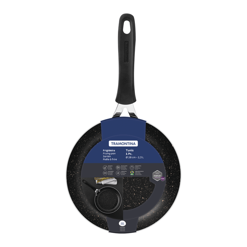 La sartén Tramontina Tunis en aluminio con revestimiento interno con antiadherente Starflon Premium y externo siliconado plomo de 28 centímetros de diámetro es la elección perfecta para quienes buscan practicidad y eficiencia en la cocina. Con su revestimiento interno con antiadherente Starflon Premium, puede preparar sus comidas favoritas sin preocuparse porque los alimentos se peguen en el fondo de la sartén. Posee un revestimiento externo siliconado que garantiza mayor durabilidad y resistencia al desgaste. No importa el tipo de cocina que posea, esta sartén es ideal, porque también es compatible con cocinas de inducción. Otro punto destacado de esta sartén son los mangos con protección de silicona antitérmica. Esto significa que podrá manipularla con seguridad y sin quemarse. Con la Sartén Tramontina Tunis tendrá una aliada en la cocina que proporcionará practicidad, calidad y durabilidad!