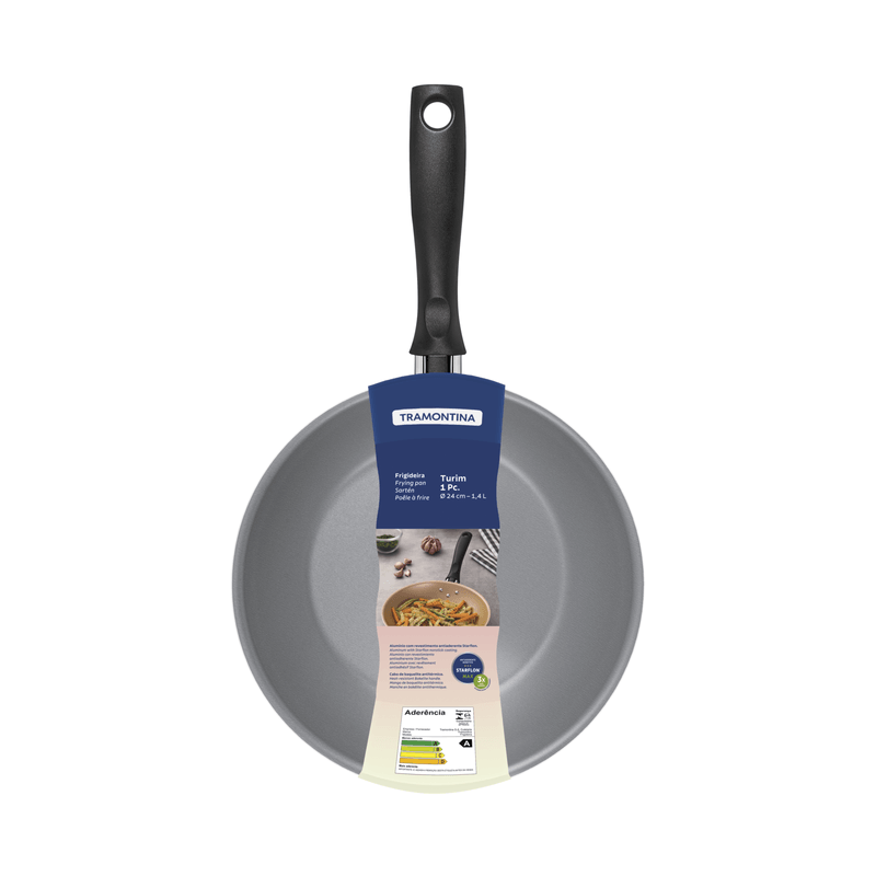 La sartén Tramontina Turim en aluminio con revestimiento interno y externo con antiadherente Starflon Max plomo 24 centímetros de diámetro y 1,4 litros es la elección perfecta para ayudarte a preparar tus recetas rápidas. Está hecha de aluminio, tiene 1,2 milímetros de espesor y un revestimiento interno y externo con antiadherente Starflon Max, atributos que garantizan que los alimentos no se peguen y facilitan la limpieza. Su mango es de baquelita antitérmica, que no se calienta y permite que la manipulación sea mucho más segura y cómoda. Además, es duradera y puede ir al lavavajillas, lo que aporta practicidad a tu día.