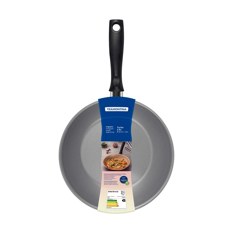 Prepara deliciosas recetas para tu rutina diaria con la sartén Tramontina Turim en aluminio con revestimiento interno y externo con antiadherente Starflon Max plomo 26 centímetros de diámetro y 1,8 litros. Perfecta para preparar comidas rápidas, está hecha de aluminio y tiene 1,2 milímetros de espesor, además, ofrece una cocción rápida y uniforme de los alimentos. Su revestimiento interno y externo es de antiadherente Starflon Max, característica que permite que los alimentos no se peguen en su superficie, la hace fácil de limpiar, más duradera y no perjudicial para la salud. Su mango es de baquelita, material antitérmico que no se calienta y garantiza más seguridad durante su uso. Además de todas estas características, es muy fácil de limpiar y puede ir al lavavajillas, ¡para facilitar tu rutina diaria!