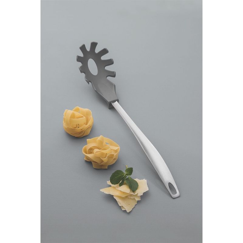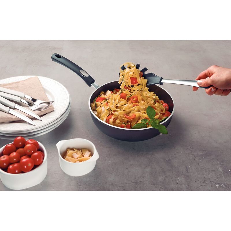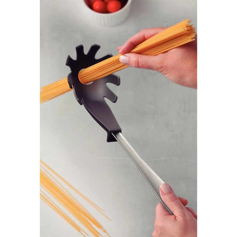 El servidor de pasta Tramontina Movin en nylon con mango de acero inoxidable gris ofrece practicidad y estilo a la hora de servir una sabrosa pasta! Con durabilidad y resistencia, se la puede utilizar a temperaturas de hasta 180 °C y es apta para el lavavajillas. Además, posee un medidor de porciones para ayudar durante la preparación de sus recetas. Un producto único, con un diseño y color diferenciados y la excelencia que solamente ofrece Tramontina!