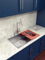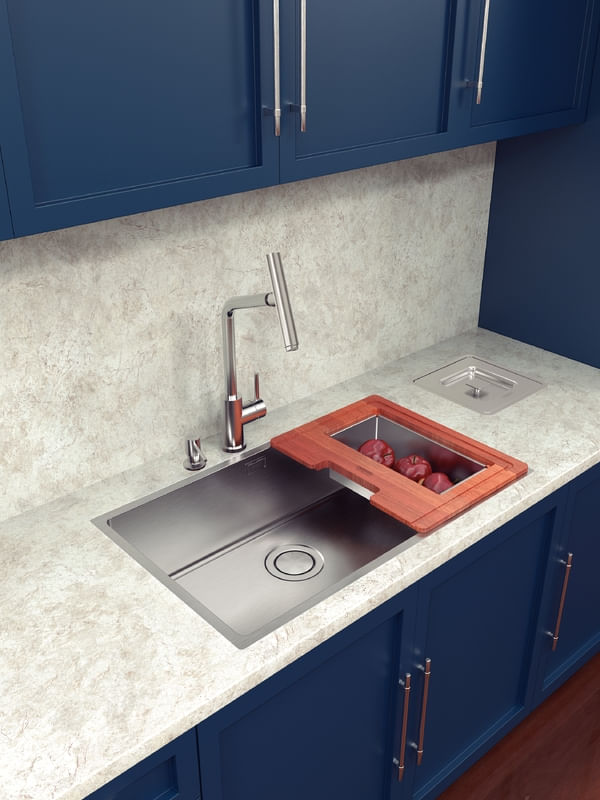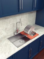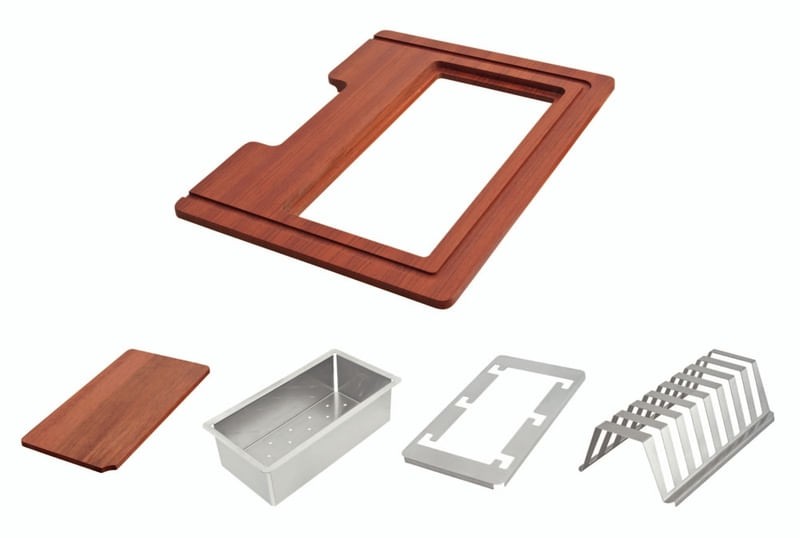 Tabla vazada en madera, con accesorios inteligentes: soporte para secado de copa, cesta auxiliar y secaplatos.La Junta se puede acoplar en el cubeta, asegurando un mejor uso del espacio en lo espacio de trabajo.Para uso exclusivo en Cubetas Quadrum y Vitrum.