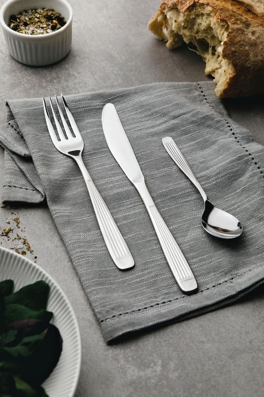 Tenedor con dientes pulidos en la parte interna, para proporcionar más comodidad en el uso, con formato apropiado para la boca y bordes redondeados. Totalmente de acero inoxidable, mantiene sus características originales, conservando la belleza, higiene y durabilidad del material. Terminación brillante, con detalle en el mango. Apropriada para uso diario, combina con cualquier ambiente. Se pueden lavar diariamente en lavavajillas.