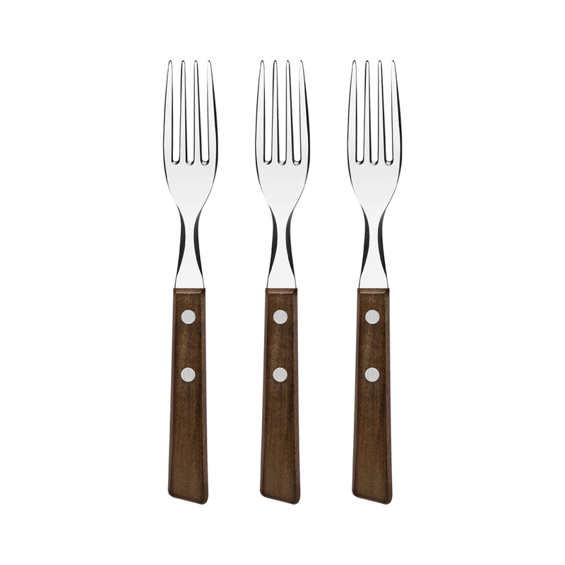 Si necesita cubiertos para que su cena sea más encantadora, el juego de tenedores de mesa Tramontina Tradicional con láminas en acero inoxidable y mangos de madera natural de 03 piezas es la elección ideal. Los tenedores presentan duración y resistencia porque están producidos con láminas de acero inoxidable. Además, poseen mangos de madera natural con remaches de aluminio, que permiten un armado rústico de su mesa y ofrecen mucha belleza a sus comidas!