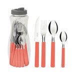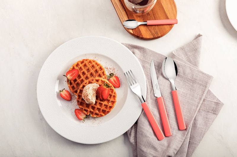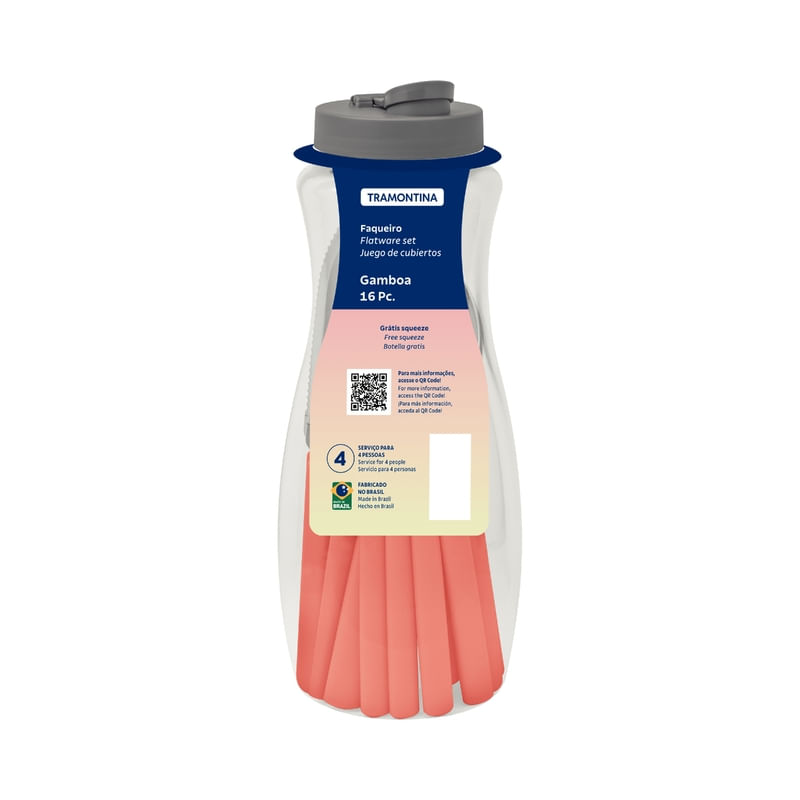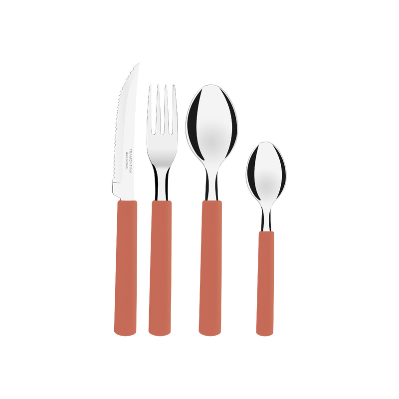 Explore the beauty of the Tramontina Gamboa 16-piece flatware set with stainless-steel blades and red polypropylene handles and create a table full of style at every meal. Designed to provide durability and strength, it has pieces made up of stainless-steel blades and polypropylene handles, which provide a modern and attractive look. Whether meeting everyday needs or impressing guests on special occasions, the 16 pieces in this set offer versatility and practicality. All of them are dishwasher safe, optimizing your time in the kitchen. Transform your meals into memorable moments and enjoy the perfect combination of functionality and beauty!