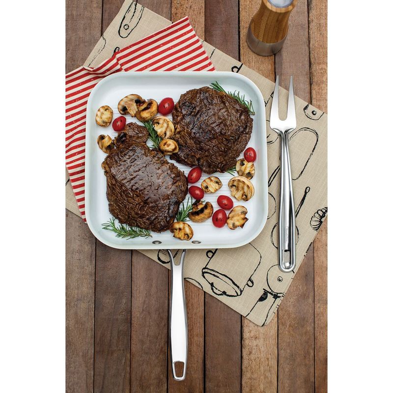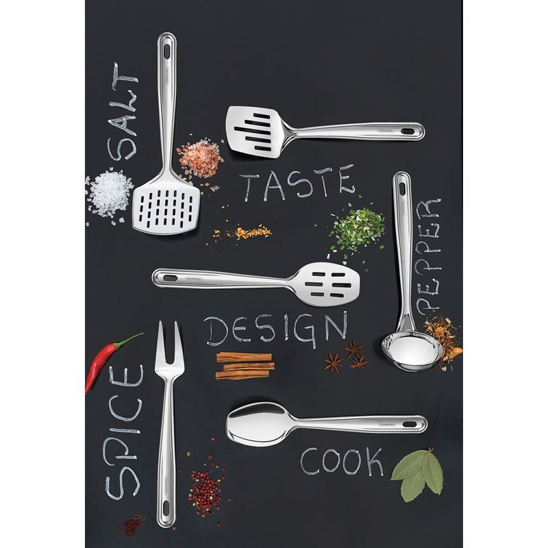 Todo buen cocinero reconoce la importancia de tener utensilios que proporcionen facilidad en el día a día de la cocina. Con el trinchante Tramontina Extrata para carne, de acero inoxidable con terminación brillante, podrá realizar preparaciones perfectas. El tenedor de la línea Extrata lleva toda la calidad, durabilidad y belleza del acero inoxidable. Además, su agujero permite incluirlo en la decoración de su cocina, trayendo un aire de modernidad, elegancia y sofisticación.
