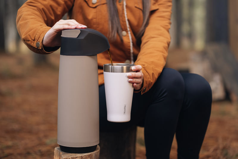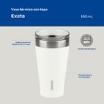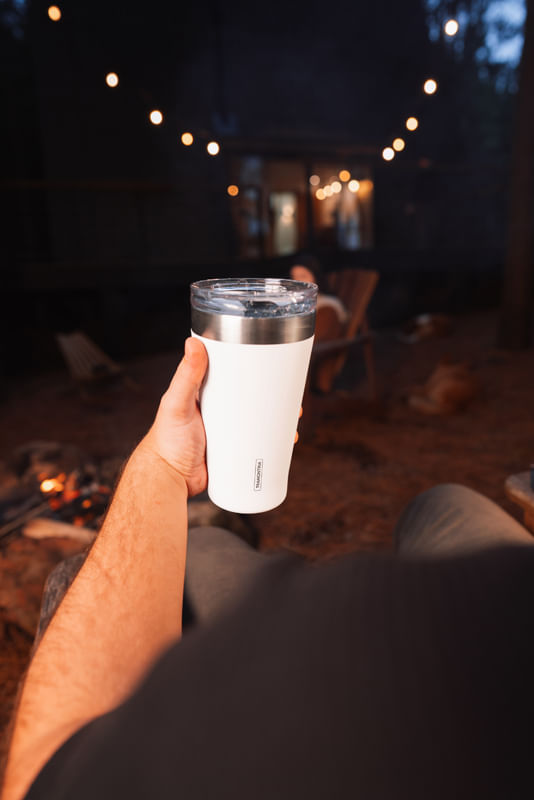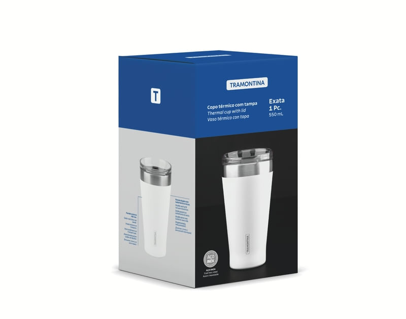 El vaso térmico Tramontina Exata en acero inoxidable con doble pared blanco con tapa de 550 mililitros es indispensable para quienes tienen una rutina apretada y necesitan artículos que sean muy prácticos. Ideal para disfrutar de su bebida hasta el final, las conserva a su temperatura ideal durante más tiempo, ya que está fabricado en acero inoxidable con doble pared y aislamiento al vacío. Además, no contiene BPA, es fácil de limpiar, no mancha y no retiene los olores, lo cual permite utilizarlo con las bebidas más variadas, desde café hasta tragos. ¡El vaso incluye tapa y posee una abertura para beber sin tener que abrirlo!