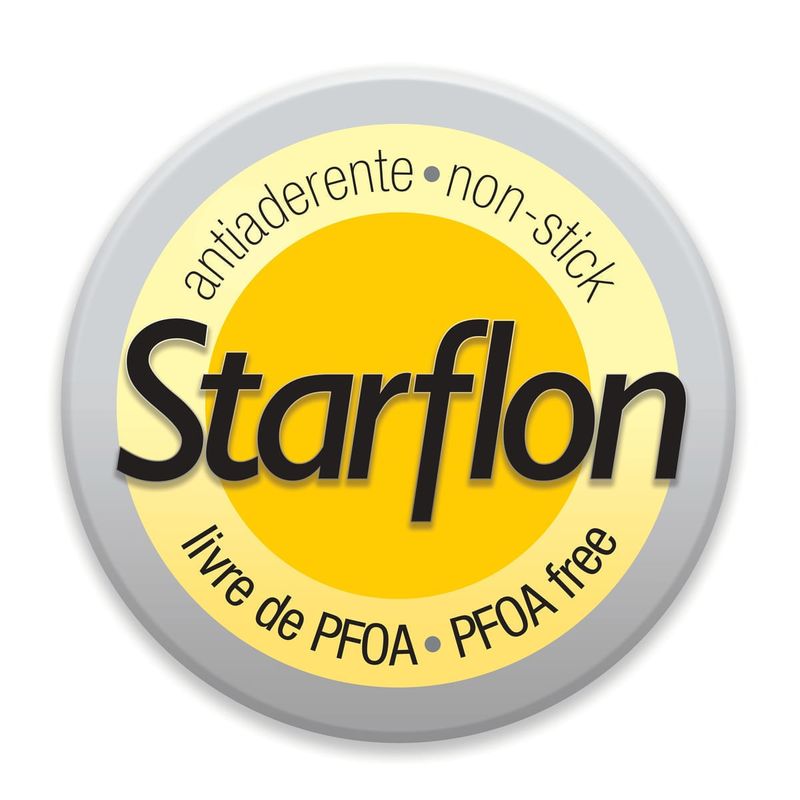 Sartén para wok de aluminio con revestimiento Starflon T1 interno y externo antiadherente. Presenta mango de baquelita antitérmica y asa de acero inoxidable.